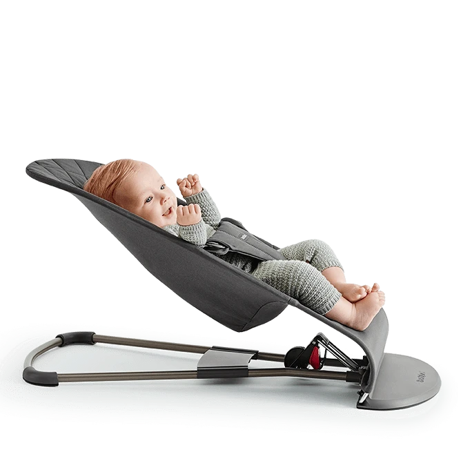 Bouncer Bliss is our classic, award-winning baby bouncer in a new design. The gray base and frame creates a soft impression, and the quilted, monotone fabric seat has a luxurious feel and will be an attractive detail in your home. The baby bouncer allows your baby rest or play safely, giving you time to shower or prepare a meal.