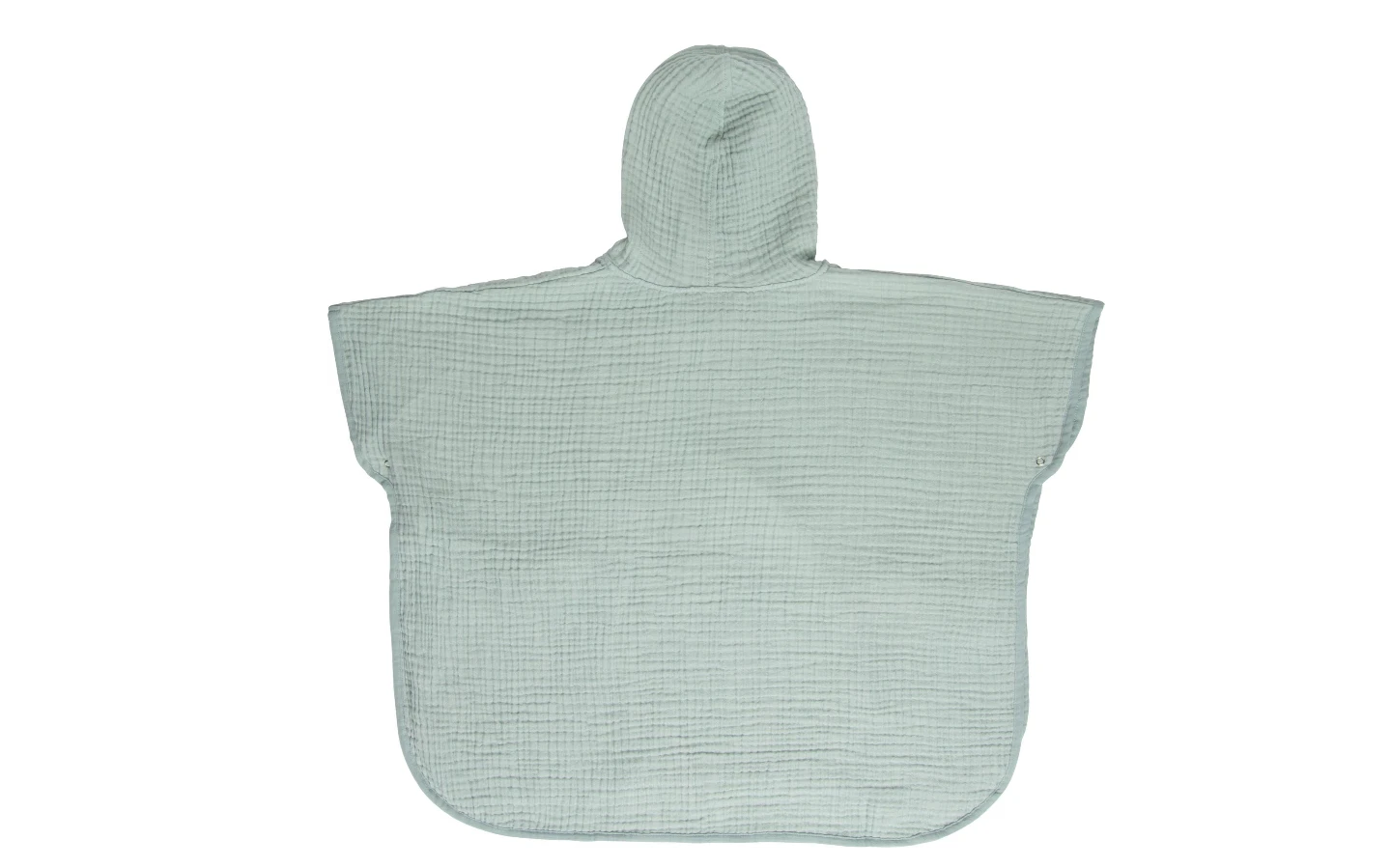 The bath poncho has a hood and is easy and quick to put on over your child’s head.