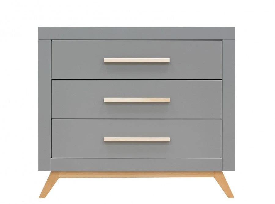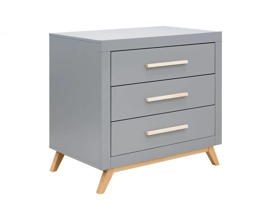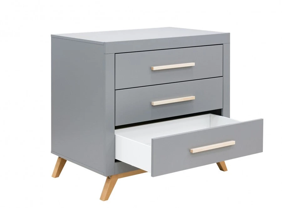 The dresser of the Fenna series has three spacious drawers where you can store a lot. The combination of grey and clear lacquered wooden accents gives this chest of drawers a modern contemporary look. Combine this changing table with the barrier Square for easy changing of the baby. And place the Fenna wall shelf above this chest of drawers for even more storage options. Available separately.