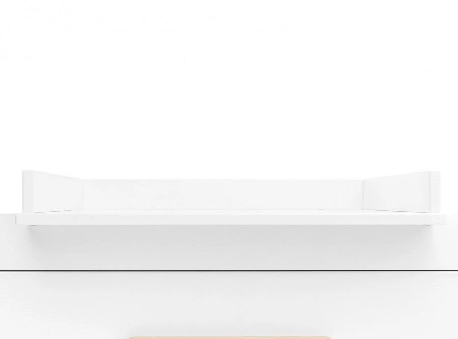 Only suitable for dressers of the serie Lisa. A barrier (fitting) on a chest of drawers ensures that your baby is in front of you, which makes the changing and dressing a lot easier because you are in a ergonomic position. In addition, you keep eye contact with your little one. On the barrier, put a washcushion with a soft cover. Due to the raised edges of the barrier, the cushion can’t move; extra safe! The barrier is attached to the tabletop of the dresser and can be removed later. Please note: a barrier is longer then the depth of a the dresser, about 10-15 cm.