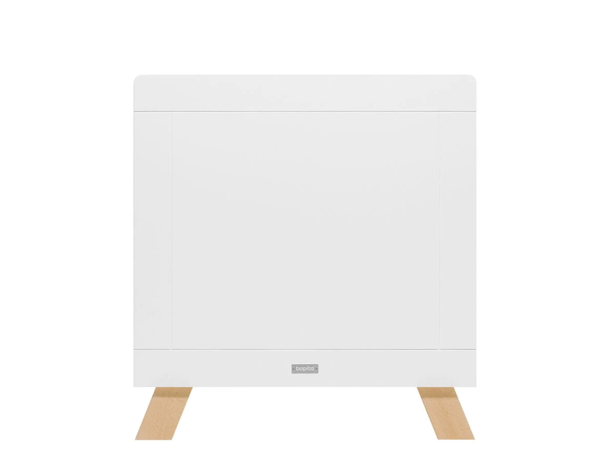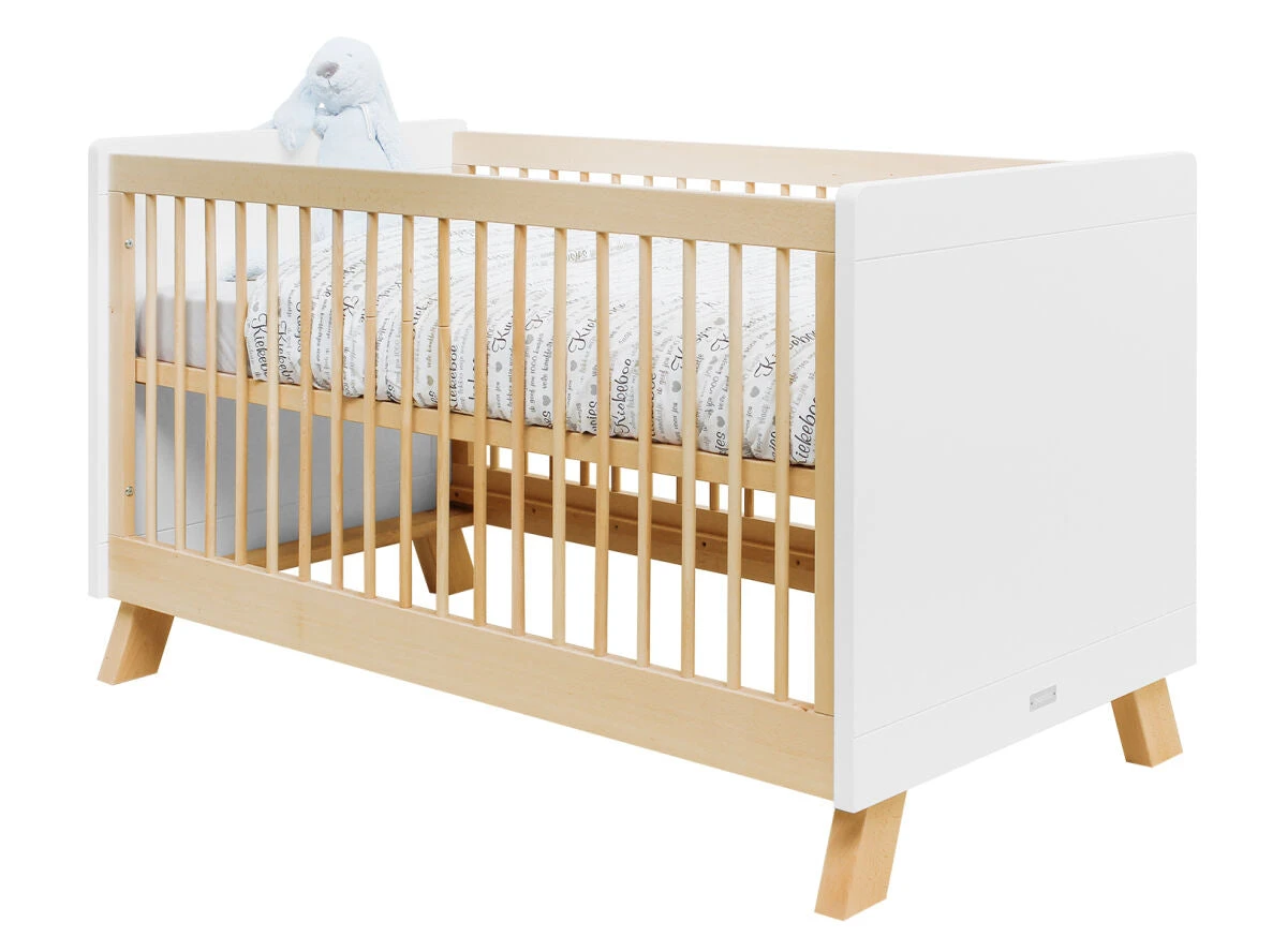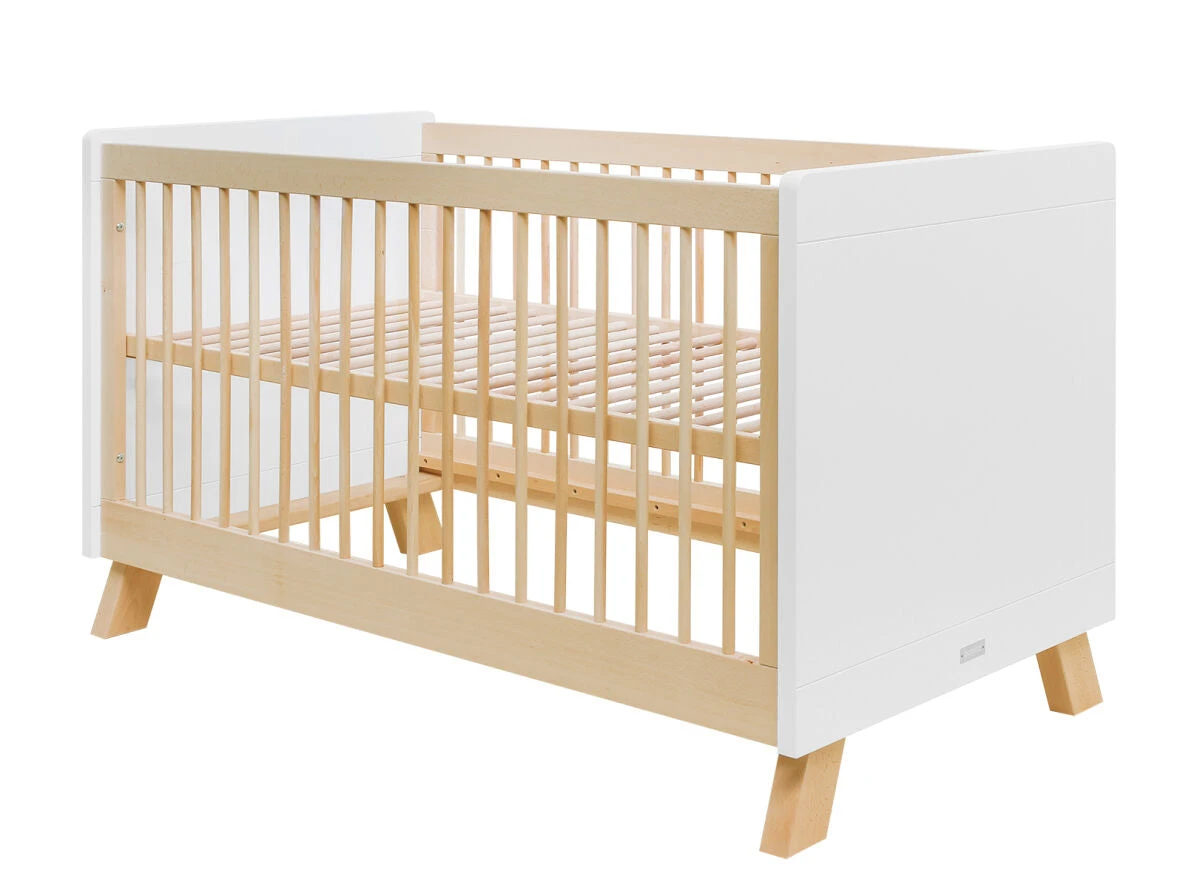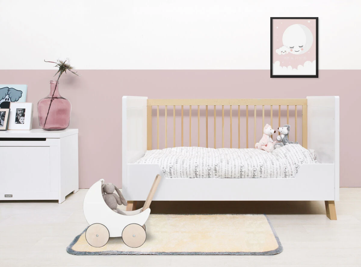 This bed (70 x 140 cm) from the series Lisa can be converted from a bed with bars tot a bench bed. The bed is finished in a combination of white and natural lacquered beech wood. Bed bottom, side rack and lower side for the bench bed are included. Bed bottom of the bed with bars is adjustable in height. The size, 70 x 140 cm, is the same for both beds so that one mattress is sufficient. Note: this bed can not be converted to a cotbed variant, there is always one bar side.
