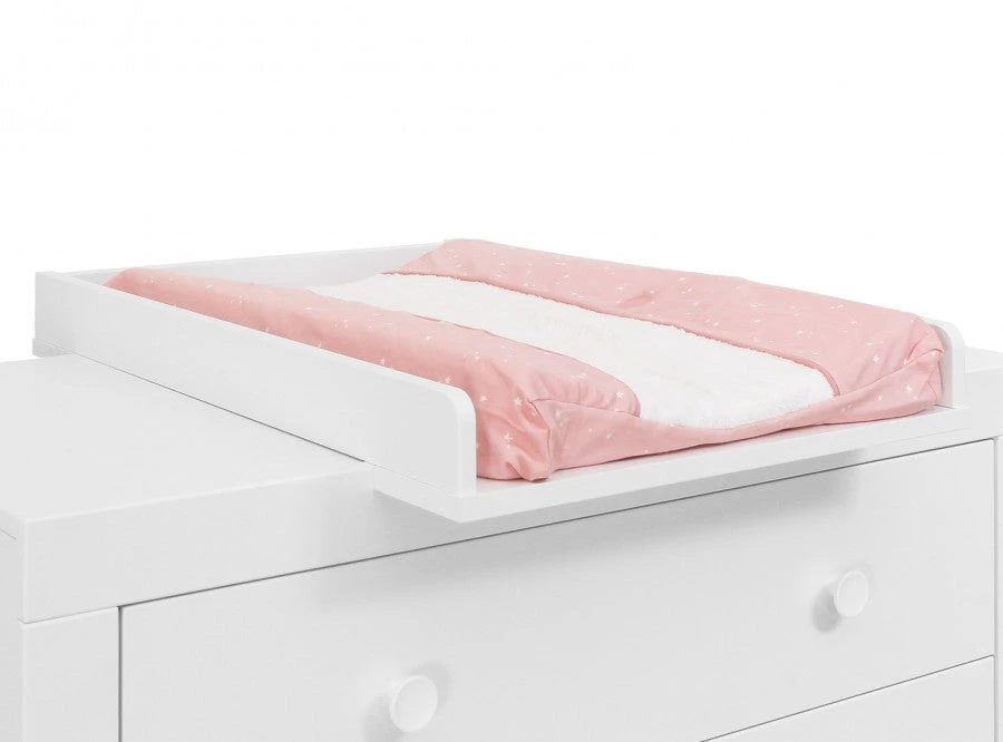 Only suitable for dressers of the Anne, Fenna, Fiore and Thijn series. A barrier on a dresser ensures that your baby is in front of you, which makes the changing and dressing a lot easier because you are in a ergonomic position. In addition, you keep eye contact with your little one. On the barrier, put a washcushion with a soft cover. Due to the raised edges of the barrier, the cushion can’t move; extra safe! The barrier is attached to the tabletop of the dresser and can be removed later. Please note: a barrier is longer then the depth of a the dresser, about 10-15 cm.