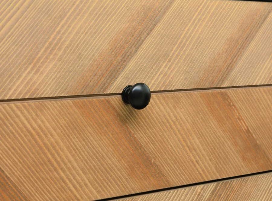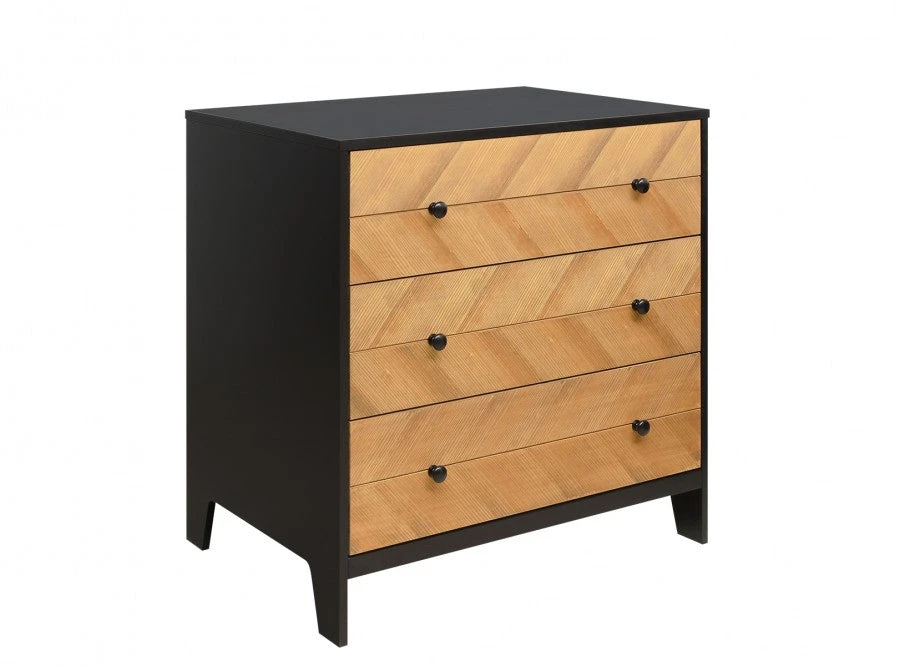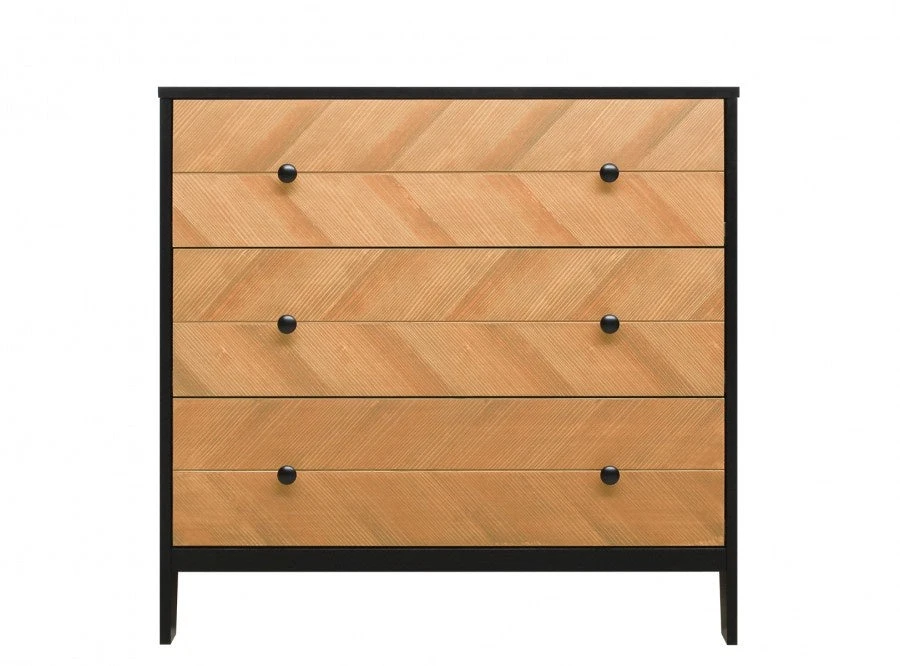 In a cool combination of matt black and veneered wood. Combine this changing table with the barrier Bo, so that you can change your child safely. Place the Job wall shelf above this chest of drawers to easily have things at hand. Since it is a natural product, the wood structure can differ per piece of furniture in the Job series.