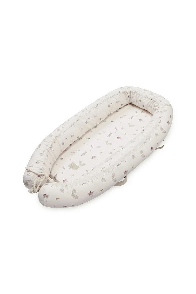 Cozy and soft baby nest made in organic cotton that gives your baby extra comfort – it is perfect in the transition from sleeping in the mother’s womb to own crib. The baby nest has a soft foam mattress surrounded by a soft edge with a drawstring making the size adjustable, following the growth of your baby.Â