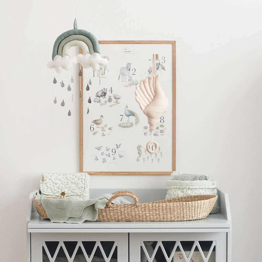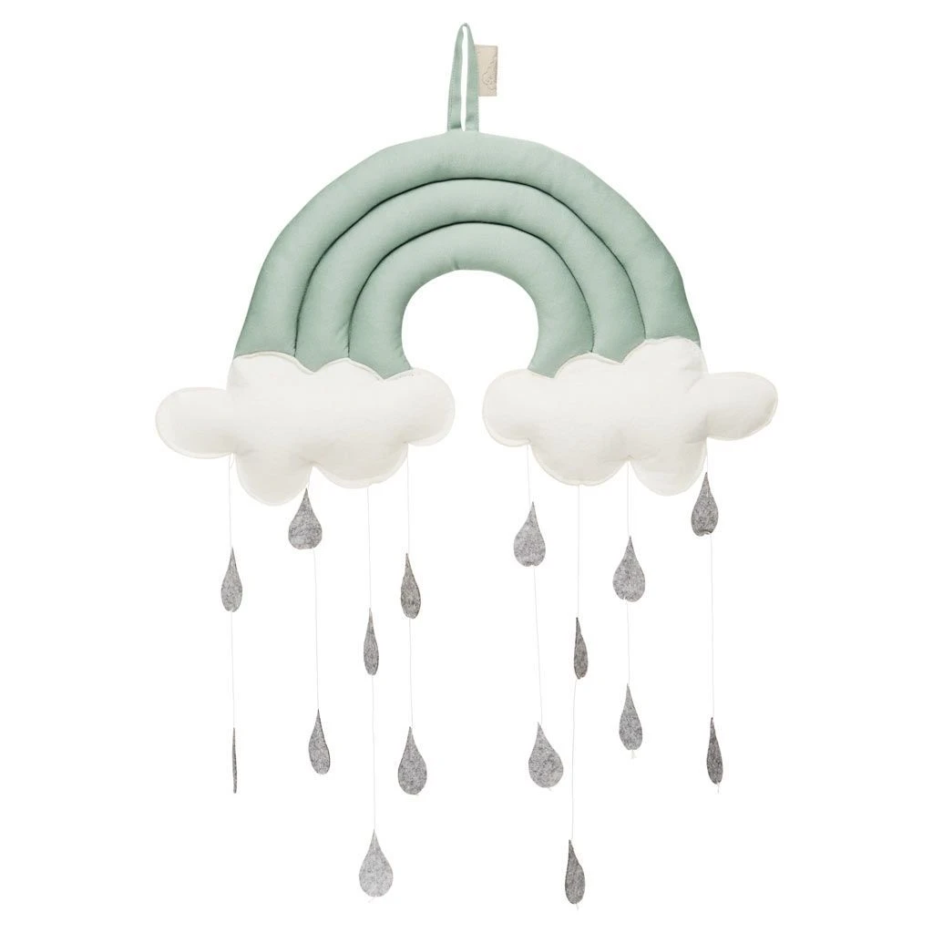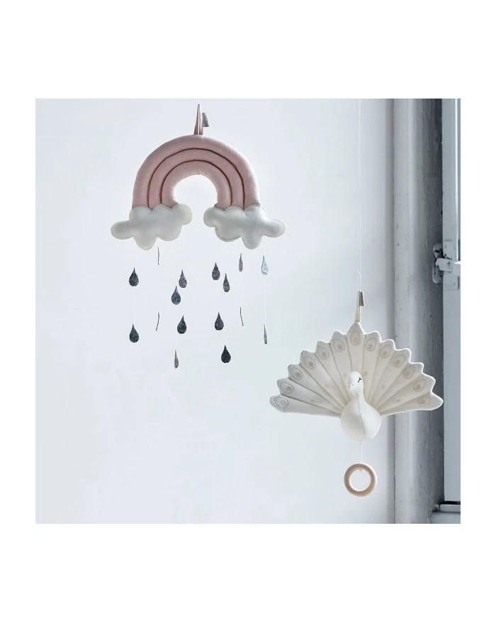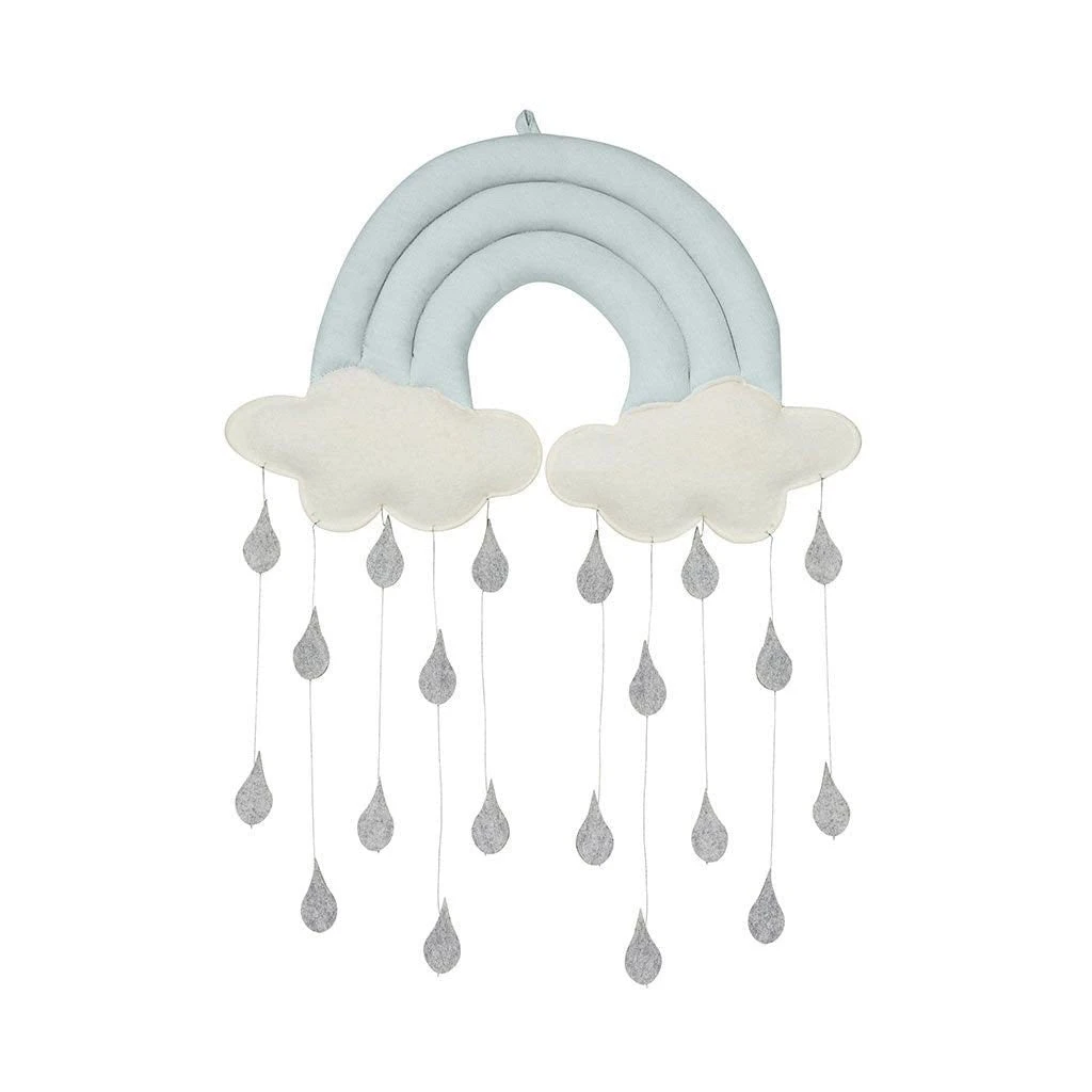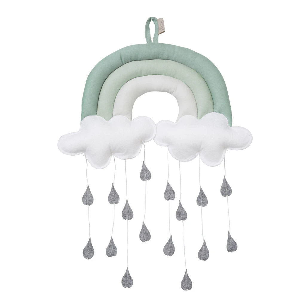 The rainbow creates a dreamy universe, and the gentle movements of the cute raindrops in the air will entertain your baby. The stripes make the mobile imitate a real rainbow in a poetic and simplistic manner.