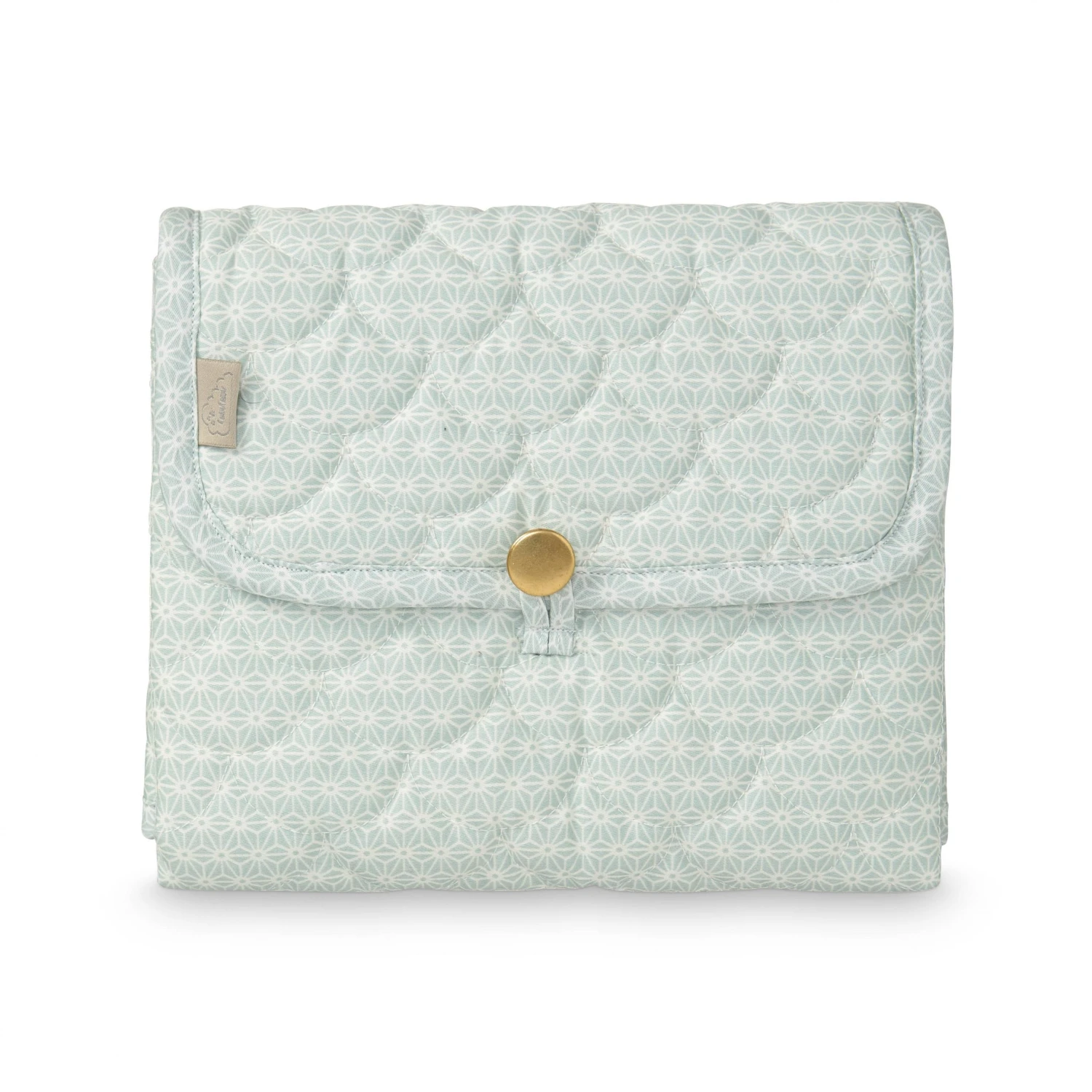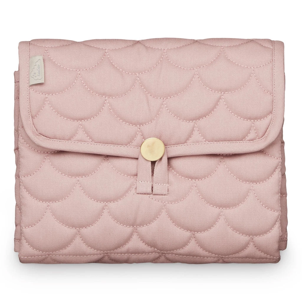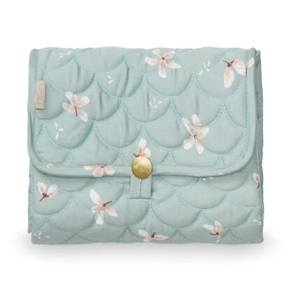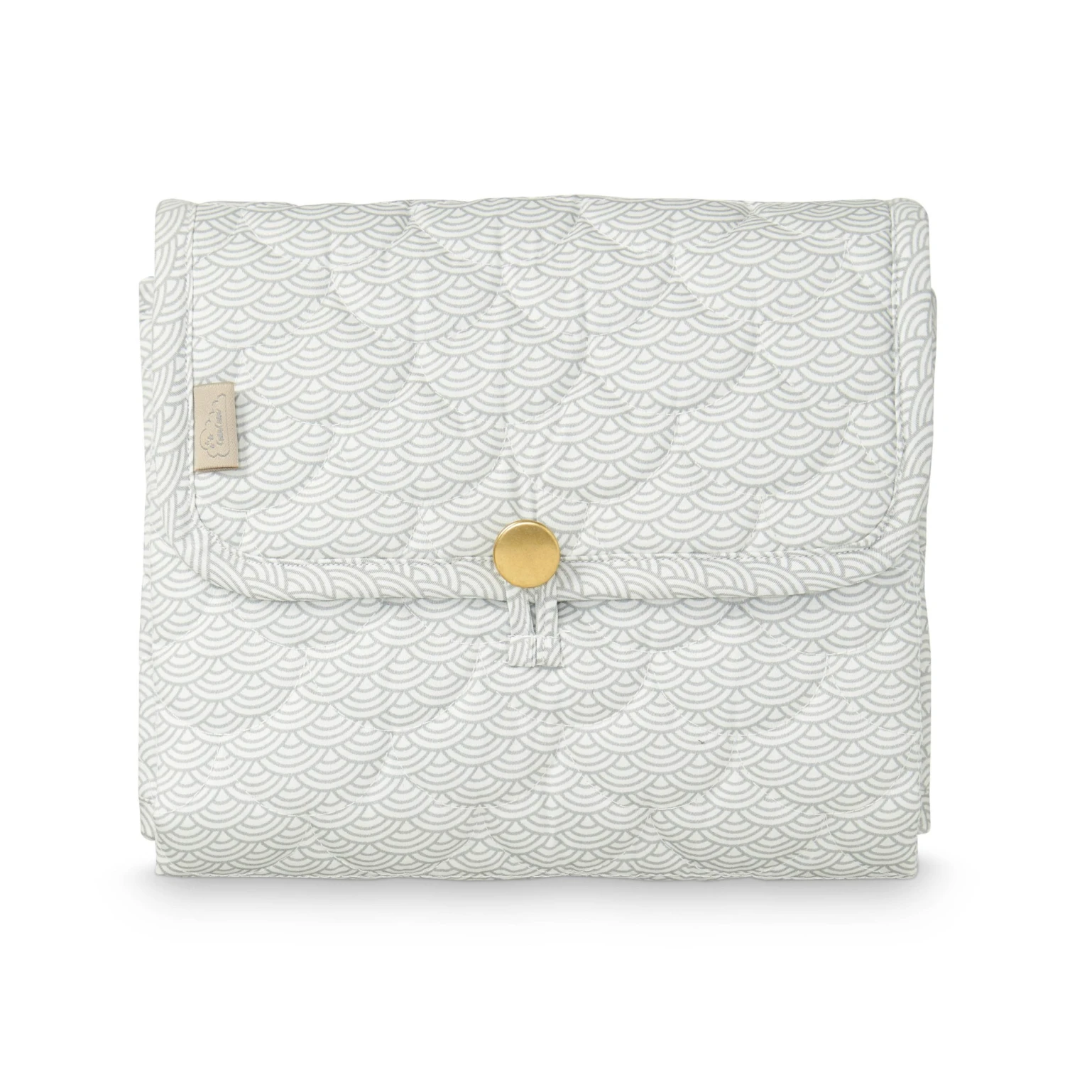 Cute and practical changing mat with beautiful wave quilt pattern – the mat is perfect for changing situations on the go. The mat is easily folded with one hand to a handy small size, that fits into the nursery/diaper bag. It has a practical pocket inside that fits a diaper and a muslin. The mat is coated on the outside to make it dirt and water repellent.Â
