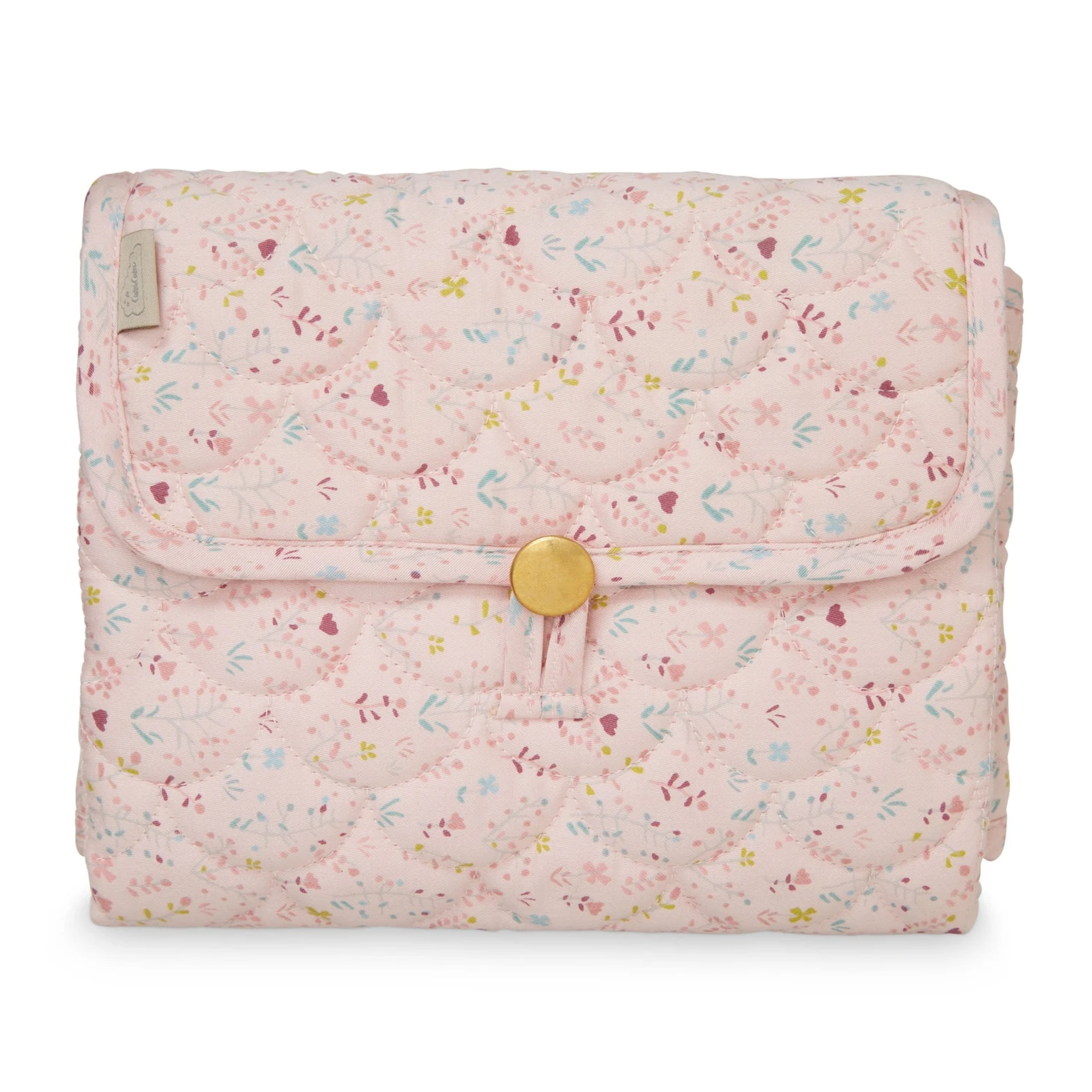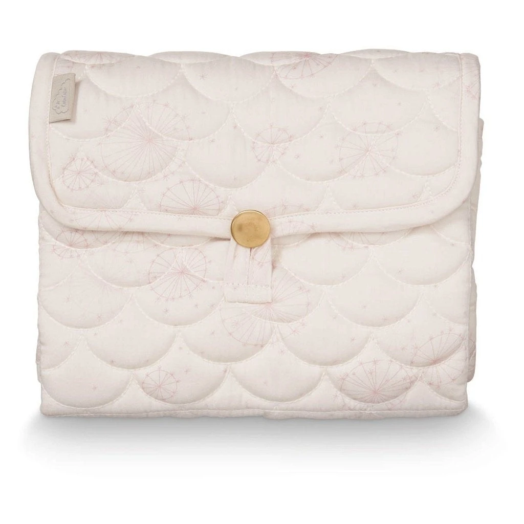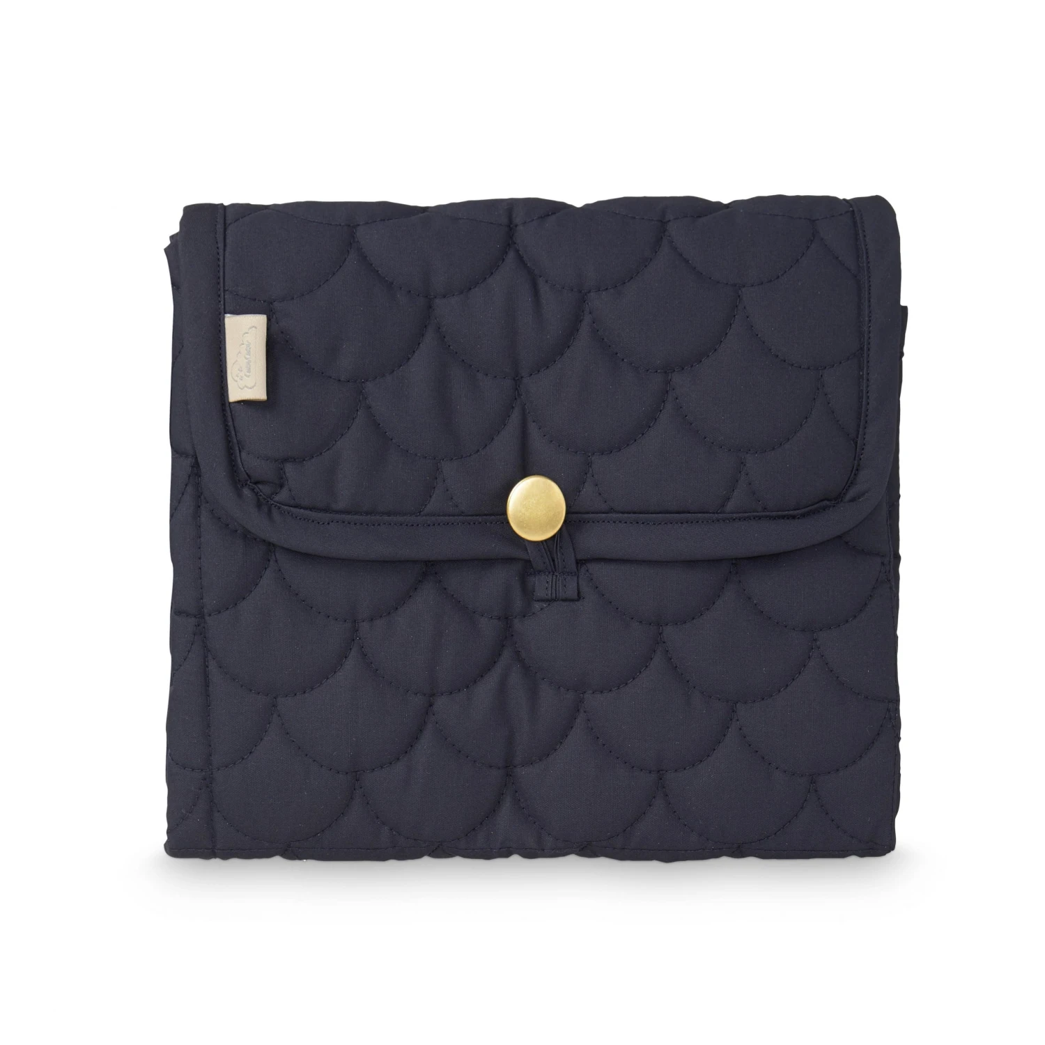 Cute and practical changing mat with beautiful wave quilt pattern – the mat is perfect for changing situations on the go. The mat is easily folded with one hand to a handy small size, that fits into the nursery/diaper bag. It has a practical pocket inside that fits a diaper and a muslin. The mat is coated on the outside to make it dirt and water repellent.Â