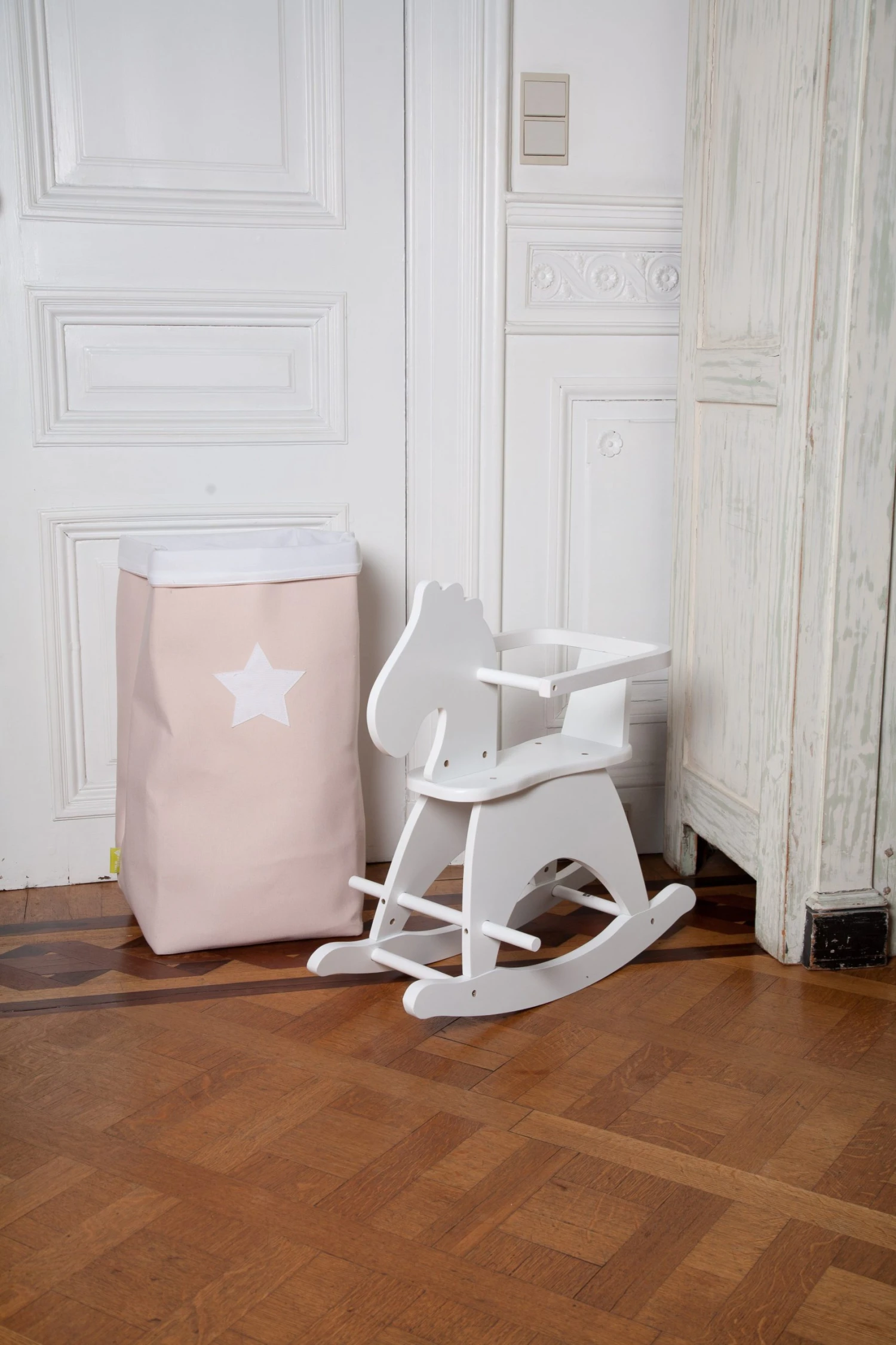 The rocking horse is conform all European safety norms and features long runners to minimize tipping so your child can rock safely for many years. Also a brace is added to prevent your child from falling from the rocking horse. The rocking horse teaches the child stability and balance and is also a lot of fun.