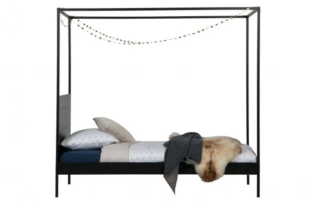 The Baron canopy bed is from the collection of the Dutch brand WOOOD. The bed is made of steel that is powder coated in matt black.