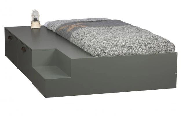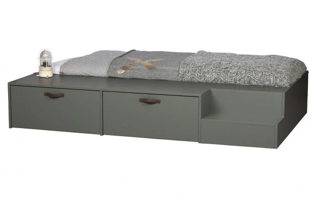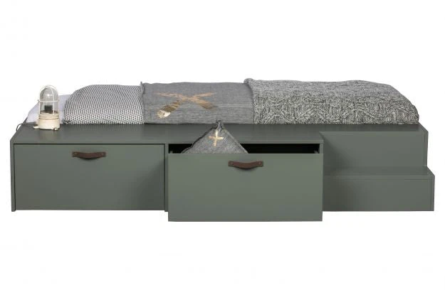 Robust, sturdy bed Solid, FSC certified, pine lacquered in green soap tint Convenient; fitted with two bed drawers to store things H 35 x W 204 x D 131 cm This Stage bed (80×200 cm) from the collection of the Dutch