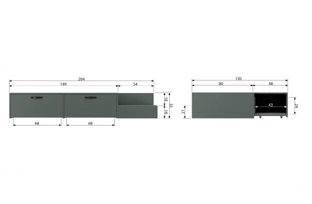 - The storage drawers have a width of 64 cm, a height of 24 cm and a depth of 43 cm and are fitted with wheels so that they are easy to open and close.