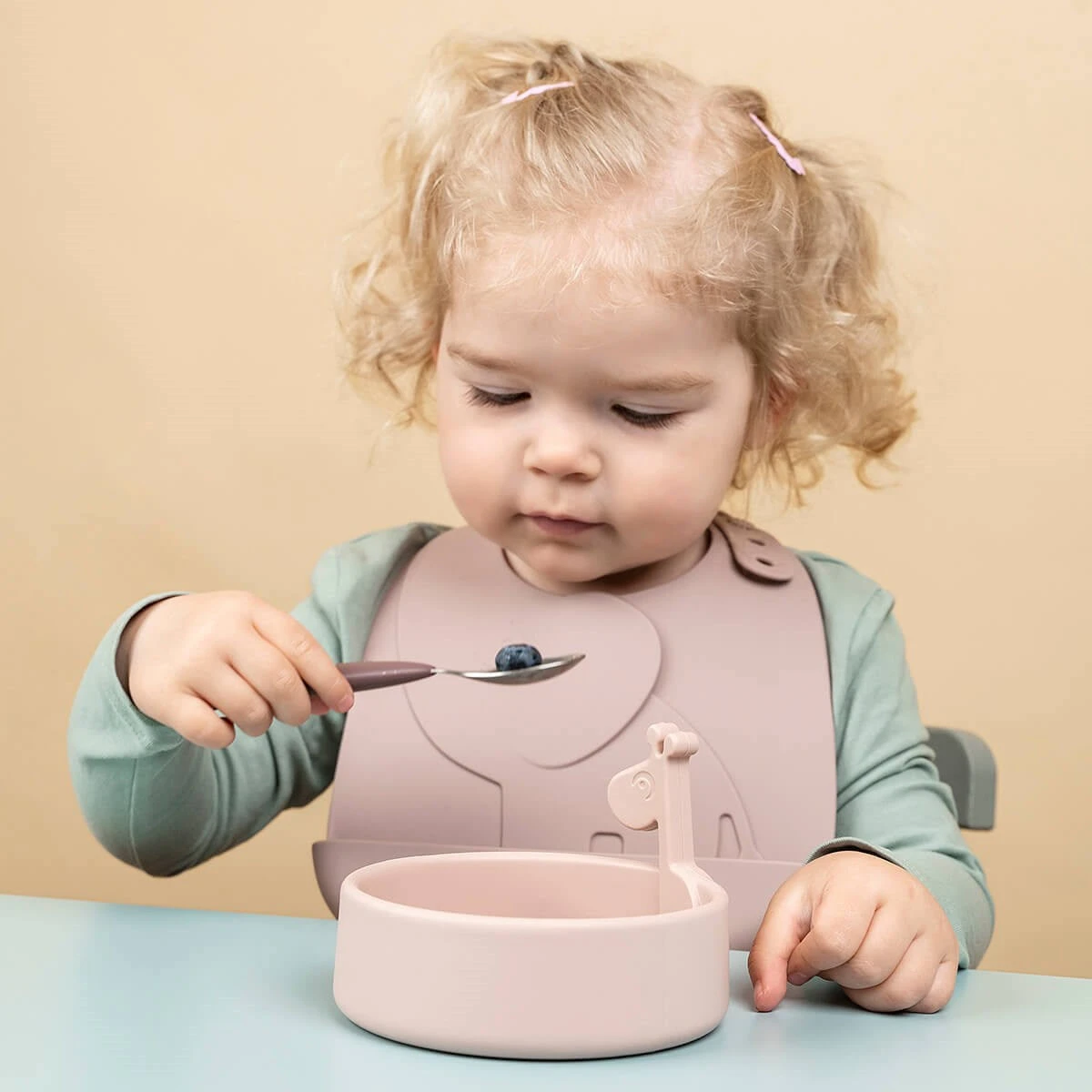 The Peekaboo first meal set is designed to trigger the curiosity of little eaters. Elphee, Raffi and Wally peek out from the dinnerware – making mealtime an extra fun time of the day. A perfectly sized dinner set for learning to self-feed.
