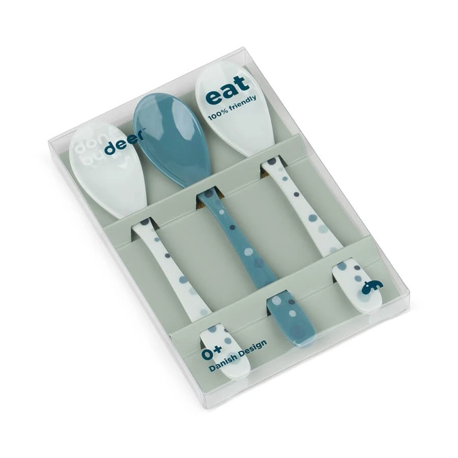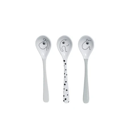 Raffi, Elphee and Ozzo will help you introduce your baby to solids. The long handle will get you to the bottom of any meal. A perfect baby spoon set for first bites.
