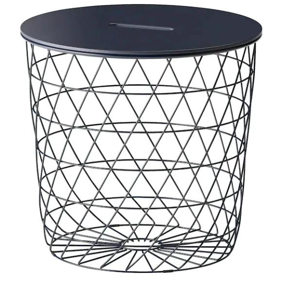 A handle in the tabletop makes it easy to open and get to things stored in the basket.