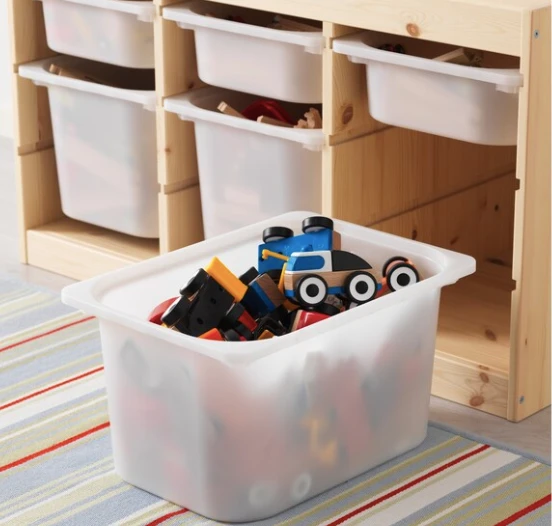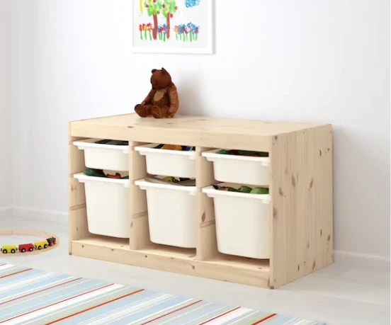 Children need room for play – and good storage for toys like TROFAST – a series of sturdy wooden frames and lightweight plastic boxes that your child can easily slide out, carry and put back again.