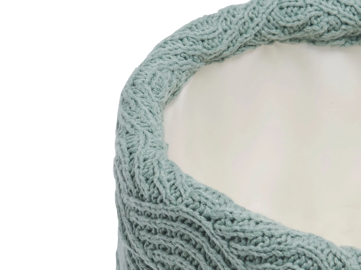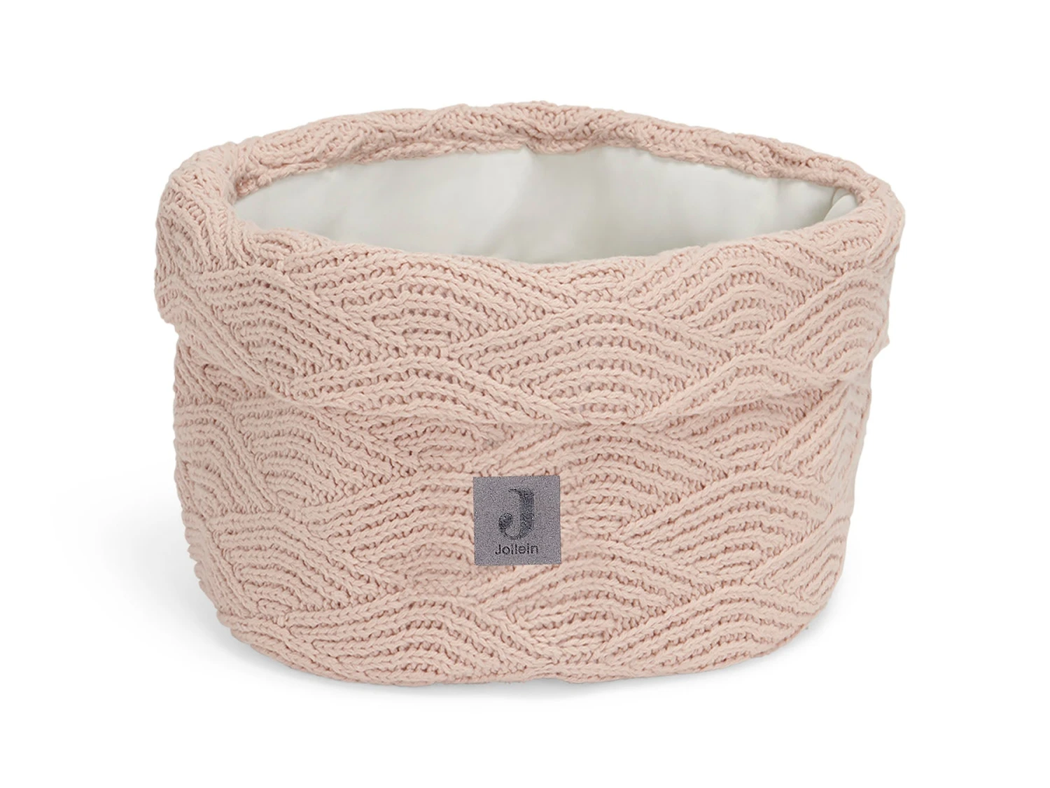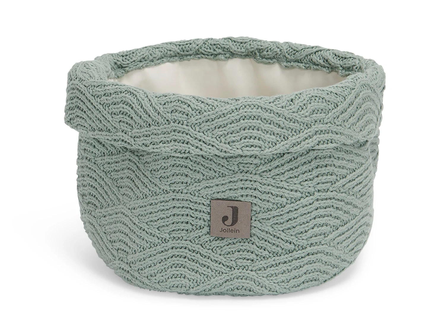 Practical basket in beautiful knit for storing things. Handy for the changing table for small care items such as a body lotion, manicure set, brush, and a thermometer. Or just so handy to keep organized.