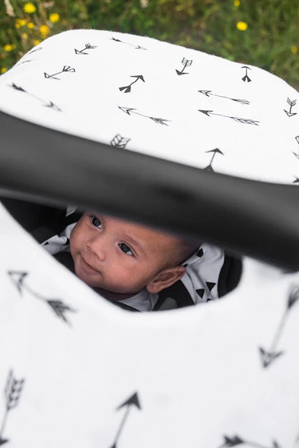 This great quality carseat canopy can be used on any infant carseat and is made of 100% cotton.