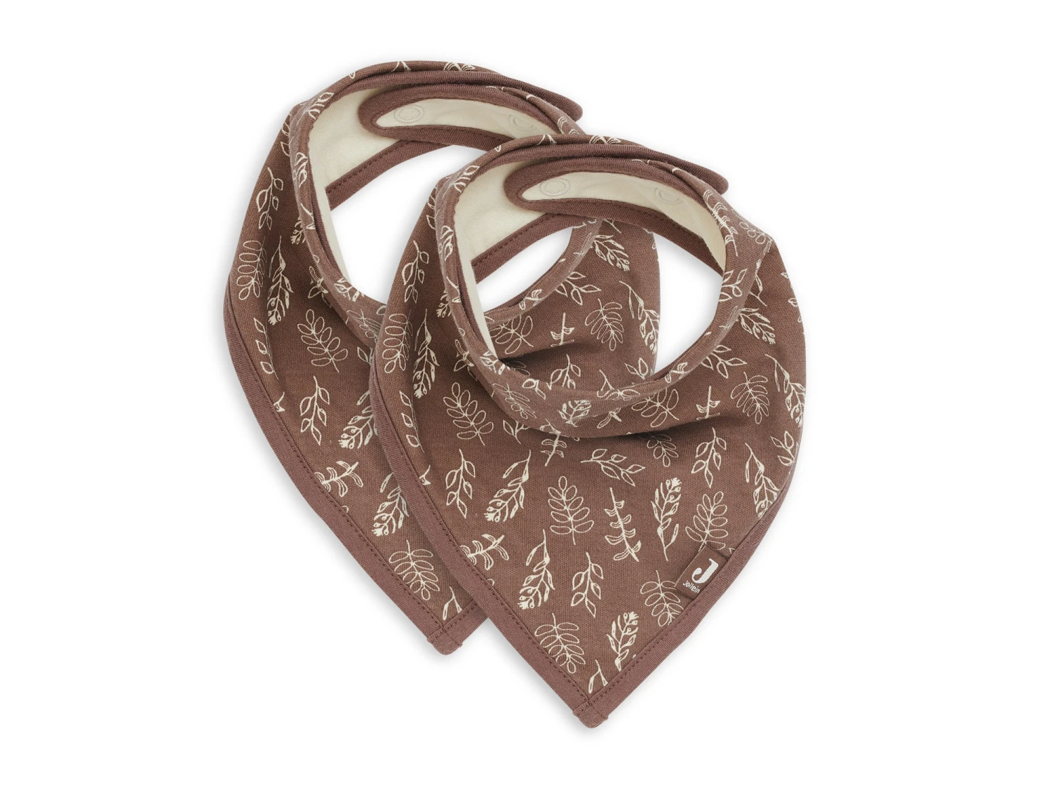 The bandana is packed per 2 pieces and can be closed with a press stud. The dimensions are 37×24.5 cm. The bib is made of jersey cotton and is also available with a floral print.