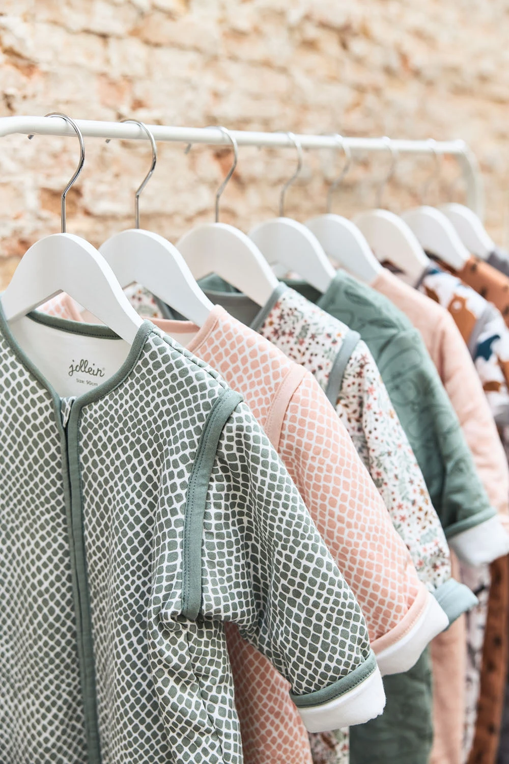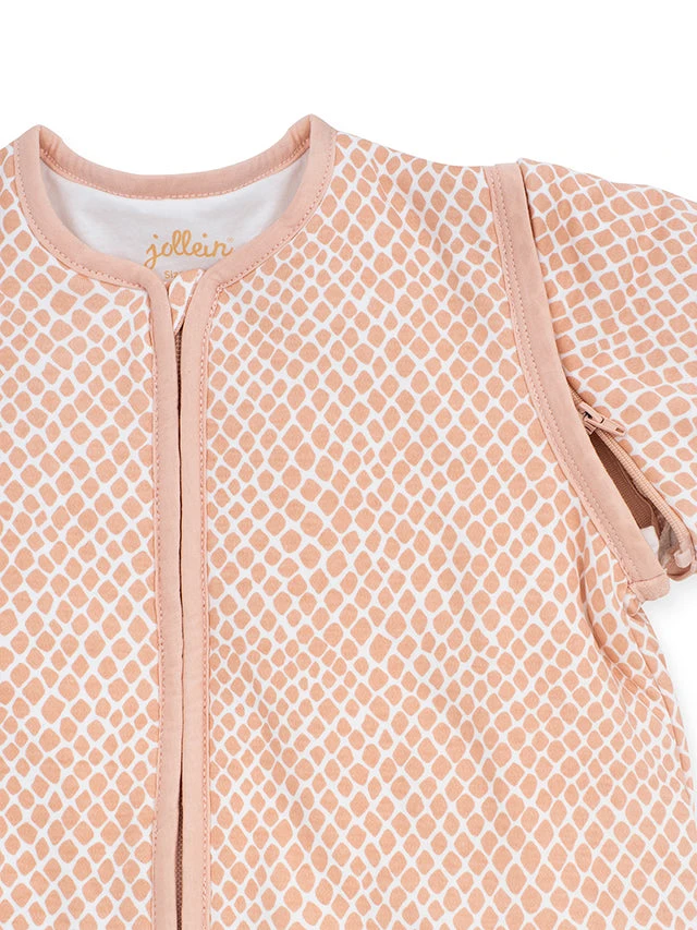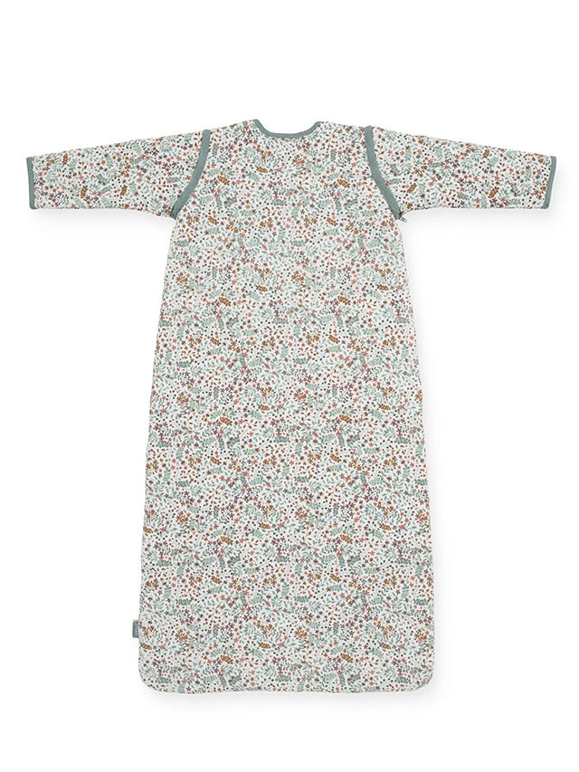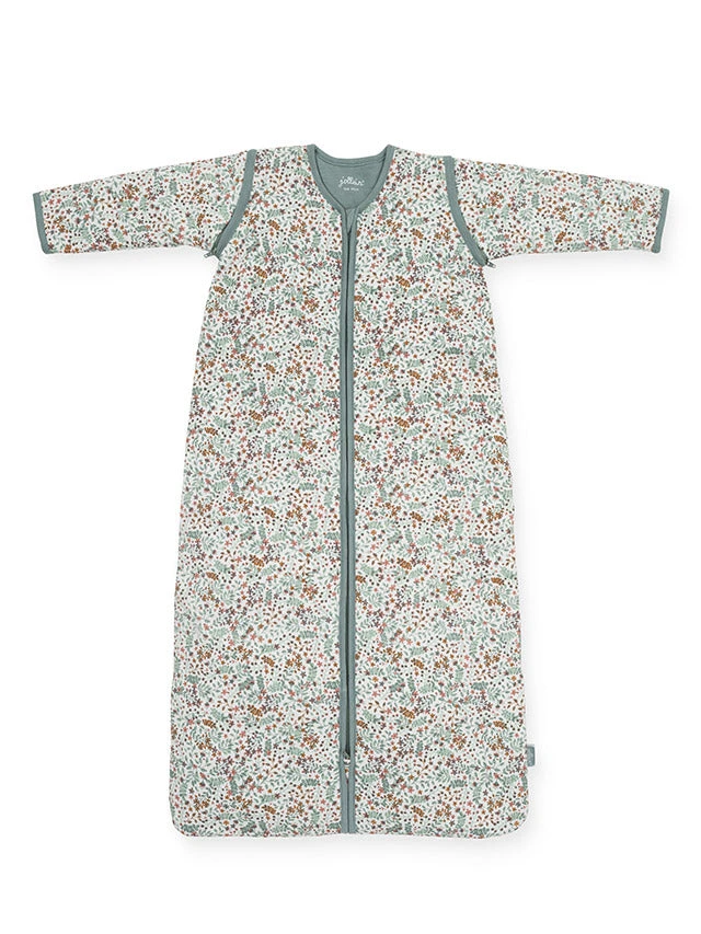 Beautiful sleeping bag with detachable sleeves from Jollein. The baby sleeping bag has detachable sleeves and a TOG value of 2.0. The sleeping bag is available in green and pink in the sizes 70 cm, 90 cm and 110 cm. The sleeping bag is made of cotton and lined with polyester fiberfill.