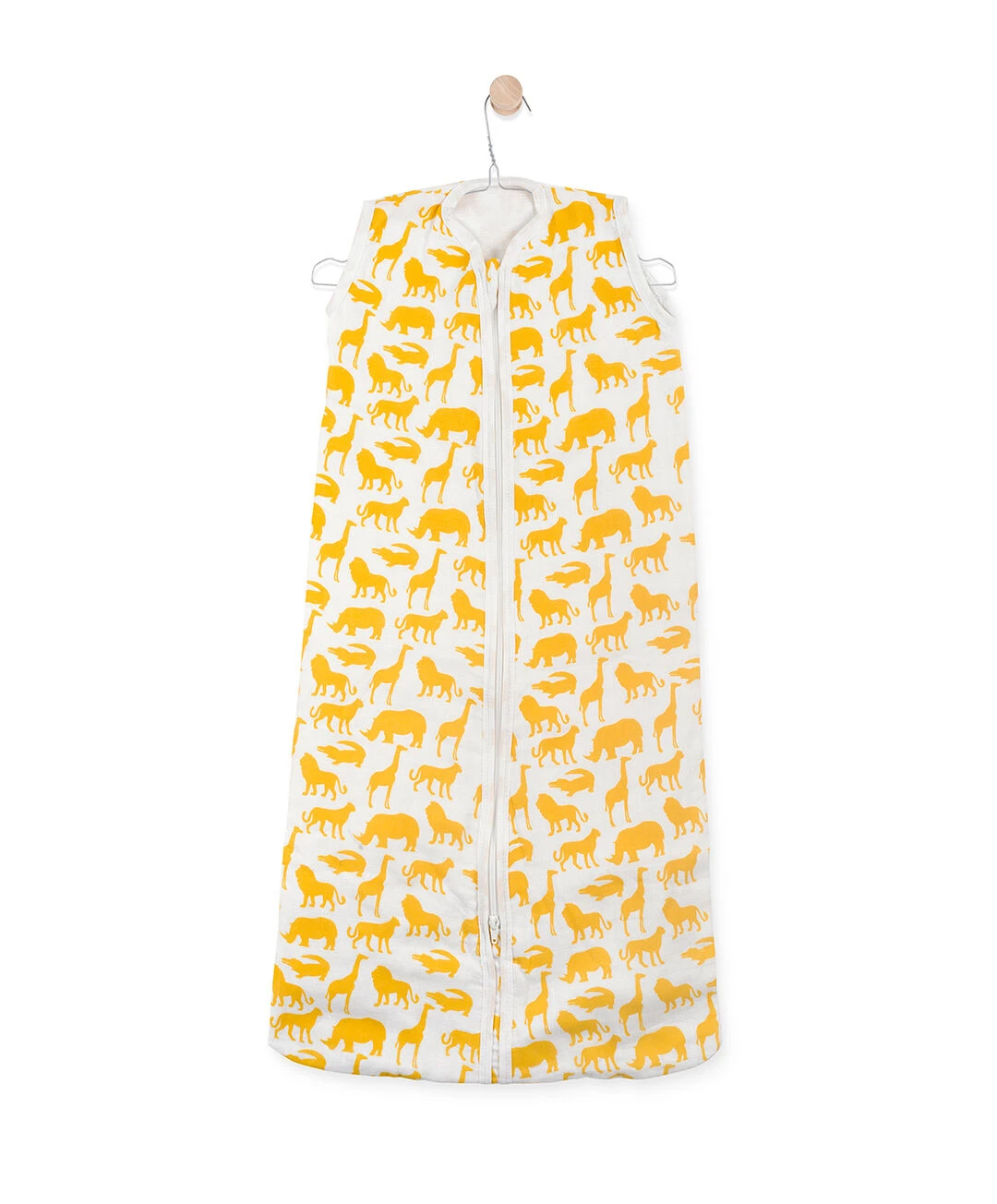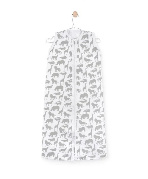 Beautiful hydrophilic sleeping bag from Jollein. The hydrophilic sleeping bag is made of 100% hydrophilic cotton and is printed with safari animals. The sleeping bag is available in the colors green, ocher and gray in the sizes 70 cm, 90 cm and 110 cm. The TOG value is 0.7.