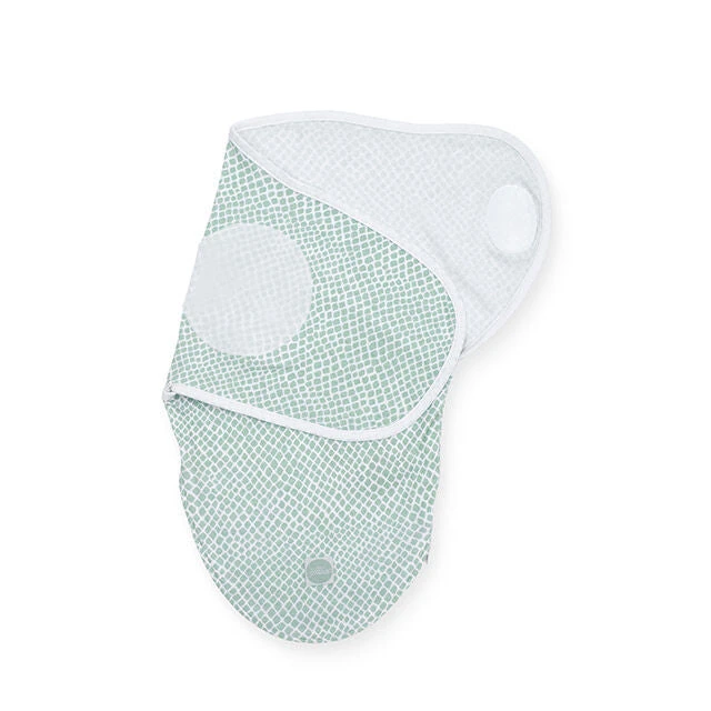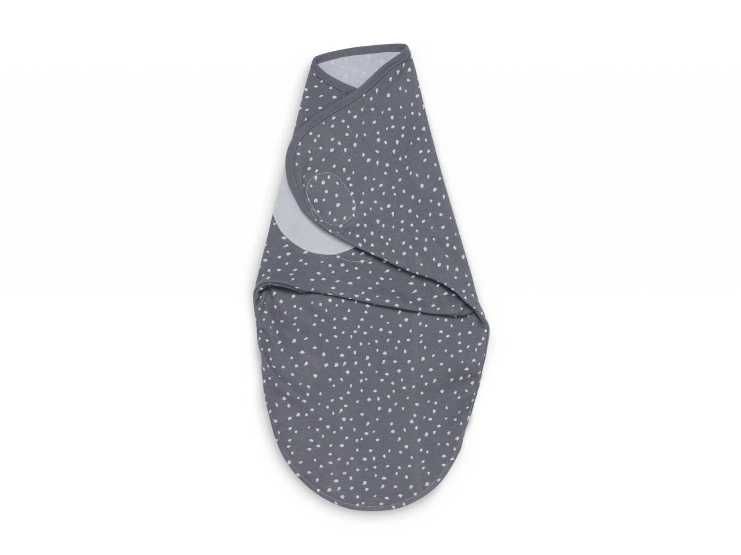 Nice wrapper sleeping bag from the Speckled collection of Jollein. This gray wrapper is made from 100% cotton and has a nice speck in the fabric. The wrapper has a Velcro closure for the arms and a zipper at the bottom. The wrapper is available in three colors: pink, blue and gray. The dimensions are 65 x54 x 1 cm. The TOG value of the wrapper is 0.6.