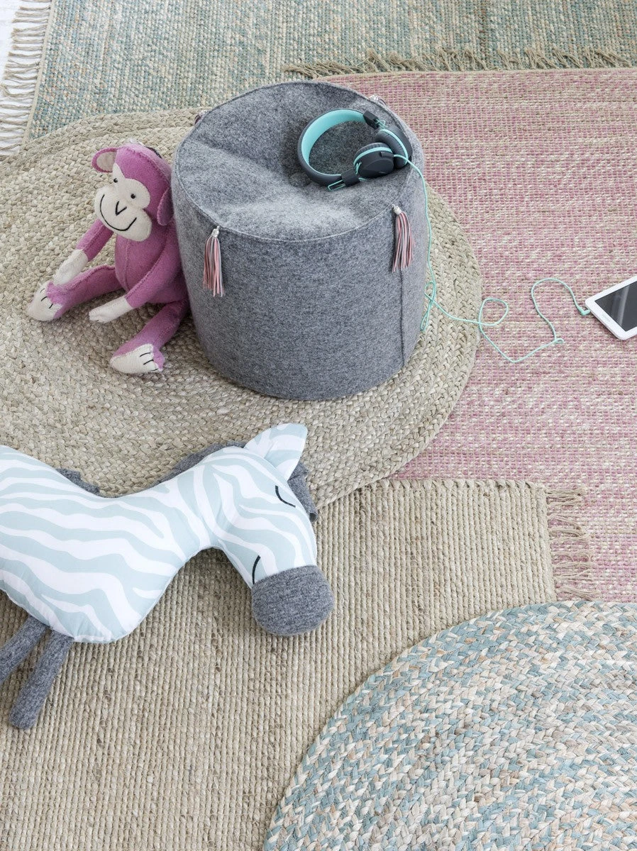 Beautiful robust carpet for the children’s room. Made of thick and sturdy jute and recycled cotton. Available in 3 colors.