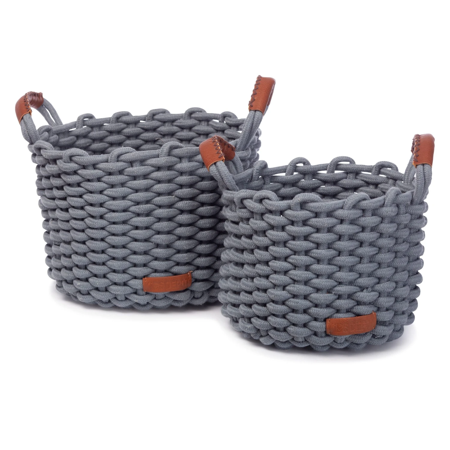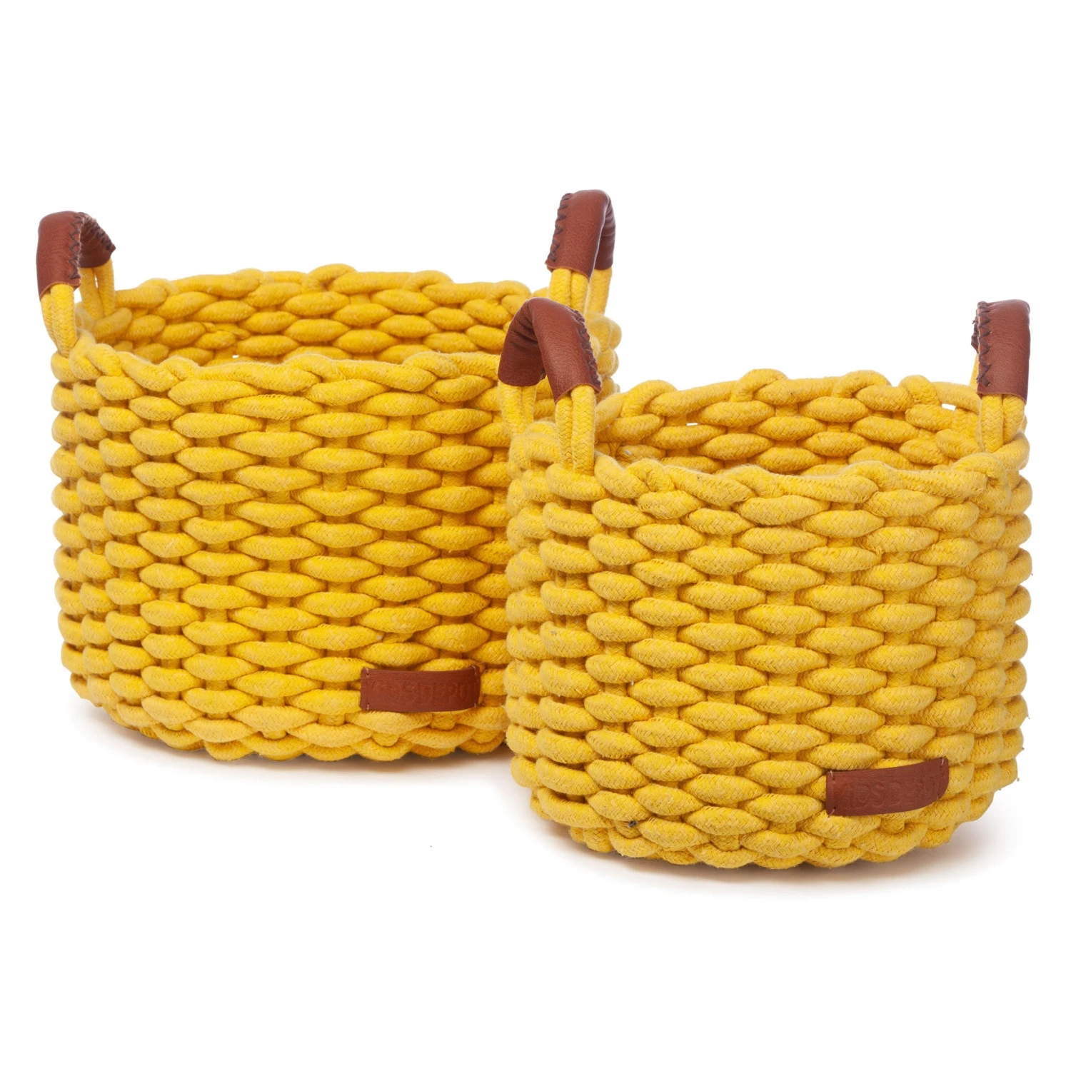 Korbo Set storage baskets are made of braided cord with leather-look handles. The baskets are sturdy and of high quality. The sets are available in 4 colors: yellow, mist. coral red and grey. A wonderful addition to any room: those are the KidsDepot Korbo Baskets. Moreover, you can store everything in these spacious baskets. From now on, store toys, clothing or accessories in these stylish baskets. You will receive a set of two baskets with different sizes: 23 x 18 cm. & 28 x 20 cm.