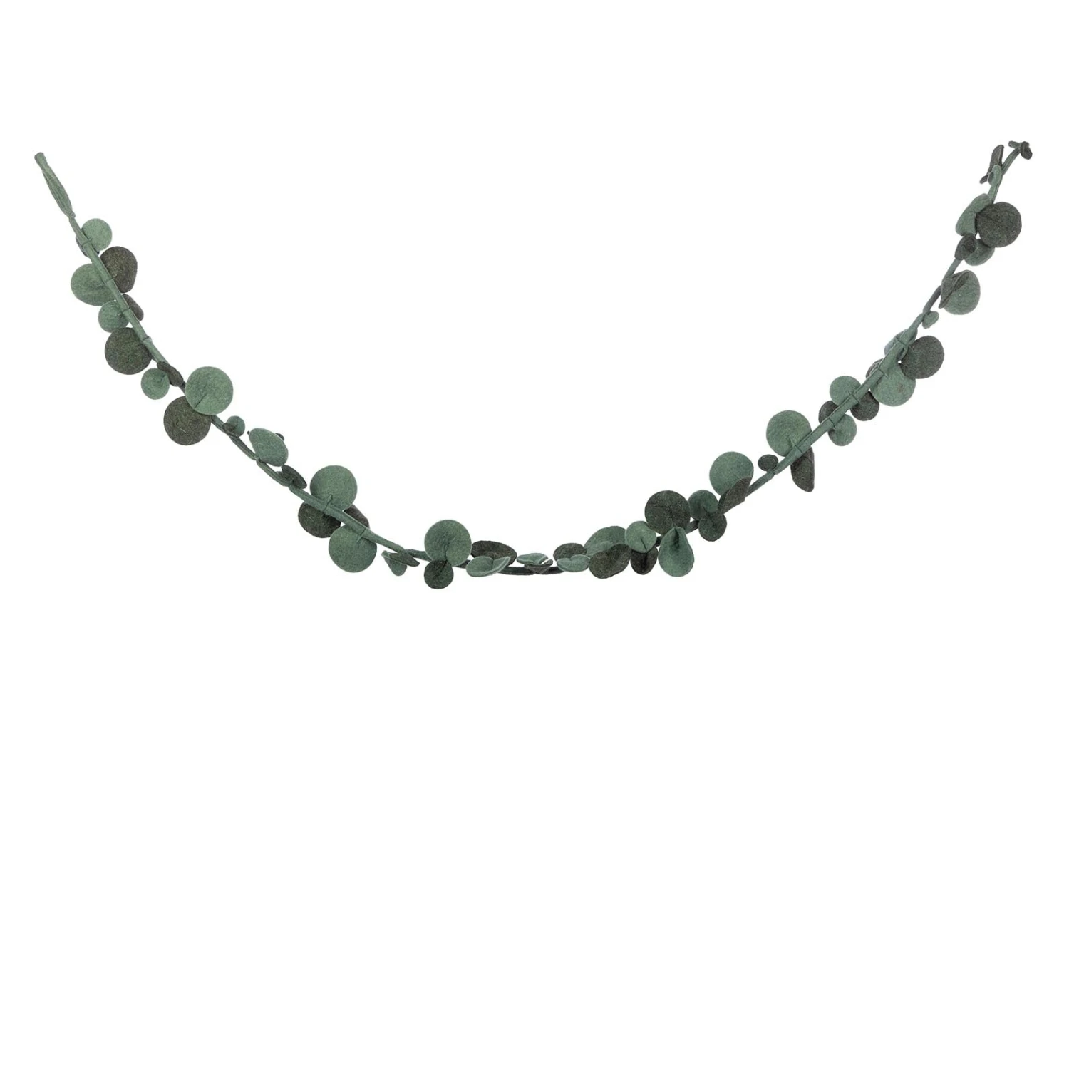 The cheerful KidsDepot Kes Felt Garland ensures a cozy atmosphere in the nursery. The garland consists of a eucalyptus plant made of felt. The total length of the green garland is 180 cm.
