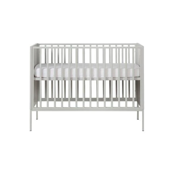 The Kidsmill cot 60 x 120 has striking metal legs that give the cot a very ‘light-weight’ look. This cot is perfectly combinable with the other furniture in the Amy series. As an extra accessory for this cot we have the drawer unit that goes beneath the cot. The light grey colour of this cot bed is a very easy colour to combine