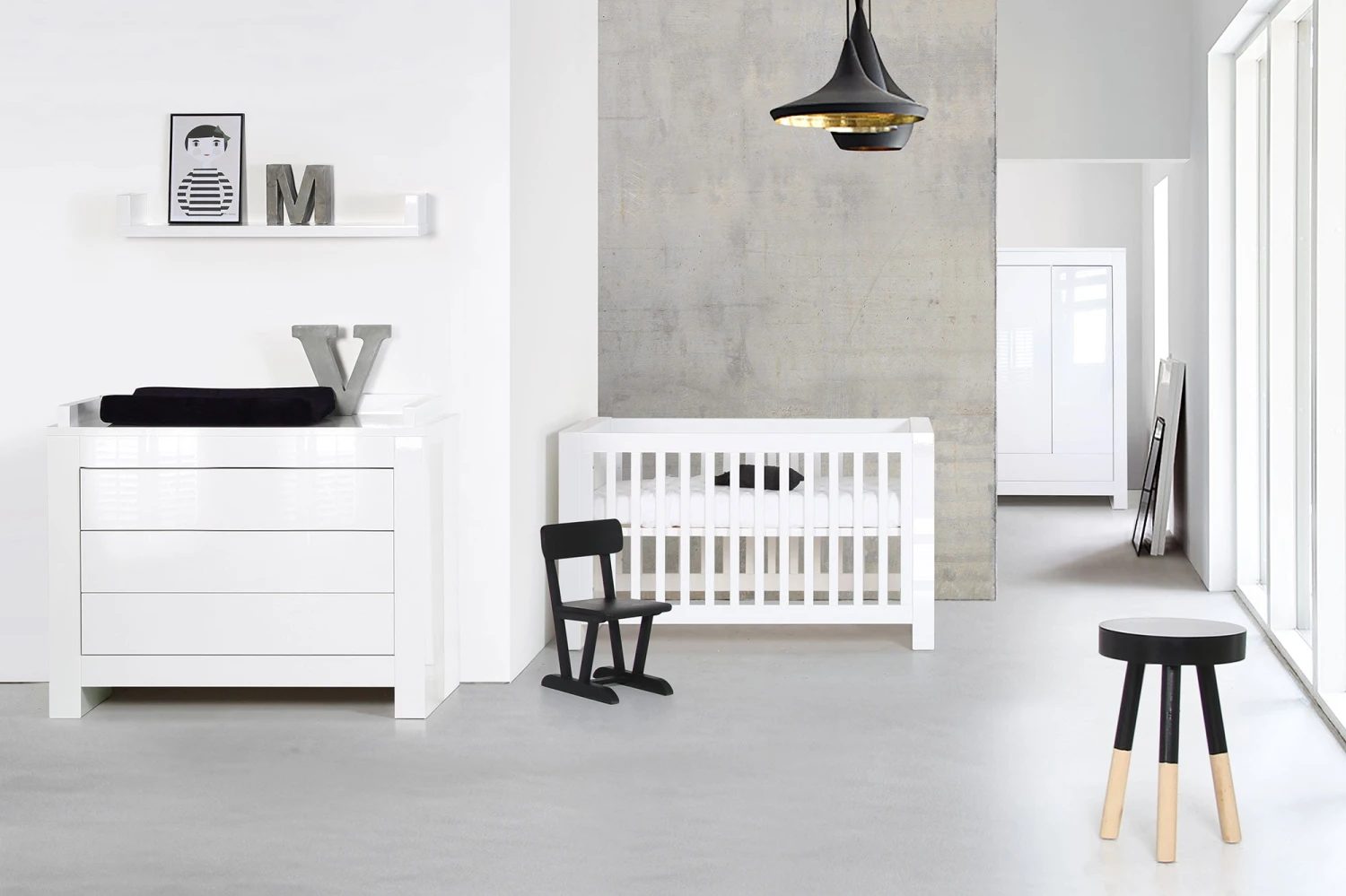 If minimalist, modern design appeal to you, you will love the Somero white nursery. Kidsmill’s designers have left the handles off doors and drawers to create a minimalist effect that fits in a contemporary nursery. Available in white gloss or white matt – for a more rugged option – and two sizes; cot or cot bed, Somero is simply cool and modern.