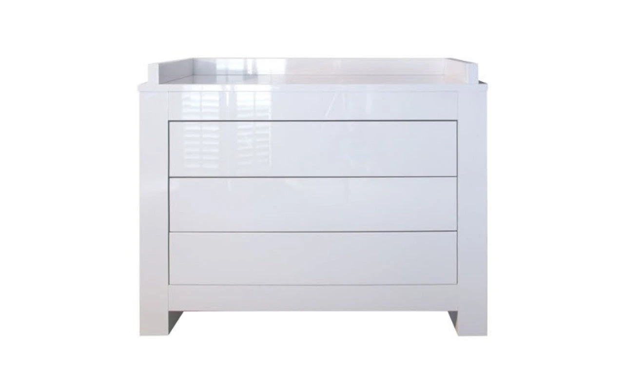 Minimalistic modern design that is both timesess and sleek. You will love the Somero High-Gloss White nursery. This furniture is made of high-quality MDF, finished with a high-gloss white. The design is cool and modern.The handlesless doors and drawers creates a minimalist effect. This furniture fits in a contemporary nursery, as well as in a more rugged interior Somero High-Gloss White is also a perfect fit.
