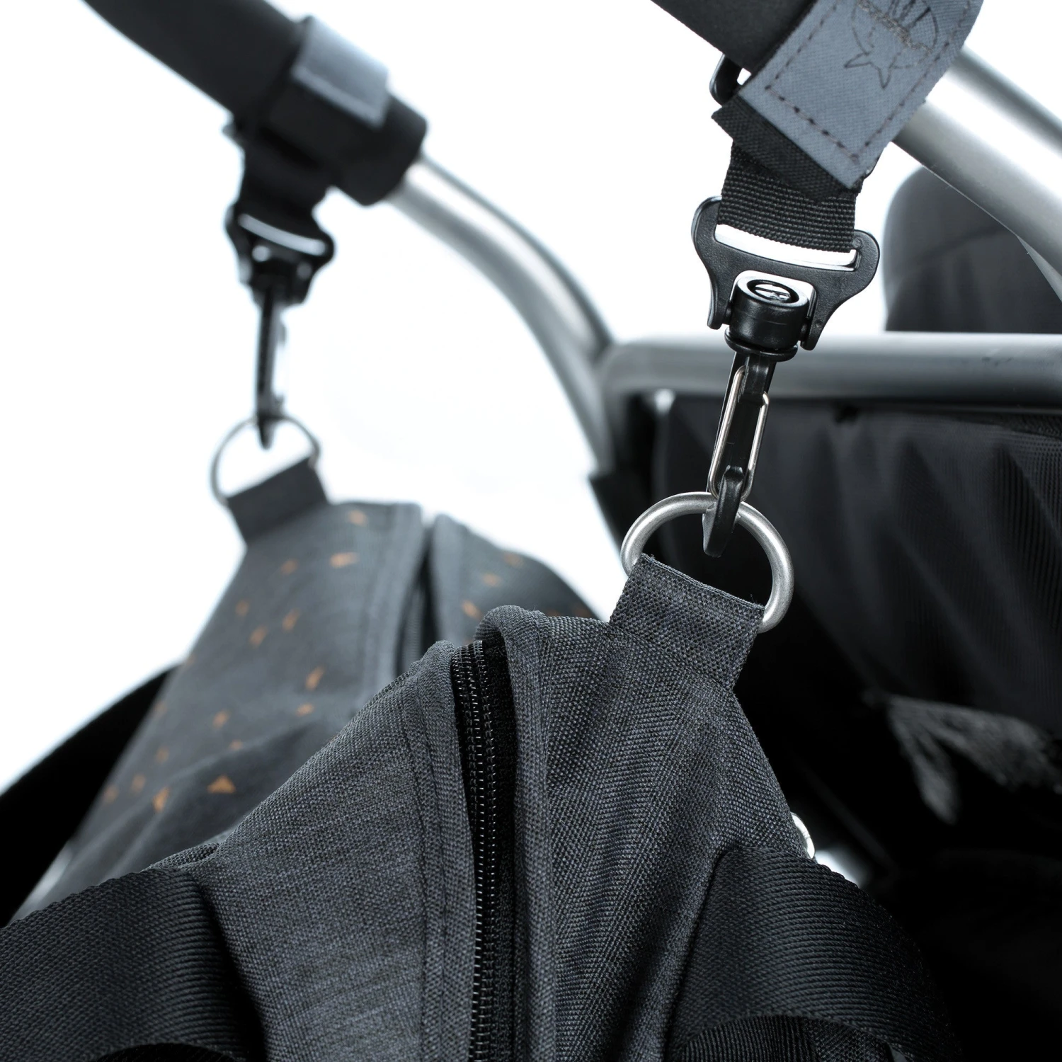 Everything in the double pack: The practical and fashionable “Twin Bag” of the Casual Line offers sufficient space to store quite a bit. The XXL Bag is equipped with an especially large, water-repellent changing mat, a removable baby food jar holder, a water-repellent wet compartment as well as additional compartments and holders for cellphone, keys and pens. Even the integrated pacifier pocket for two and the insulated removable bottle holder in the XXL format are designed especially for twins. Thanks to the integrated additional backpack feature, mothers will have their hands free for their little ones any time. The shoulder strap only needs to be hooked into the respective snap hook and attached, and the bag is ready to be swung onto her back. For the stroller, there’s an extended attachment so you can also relieve the back at any time.