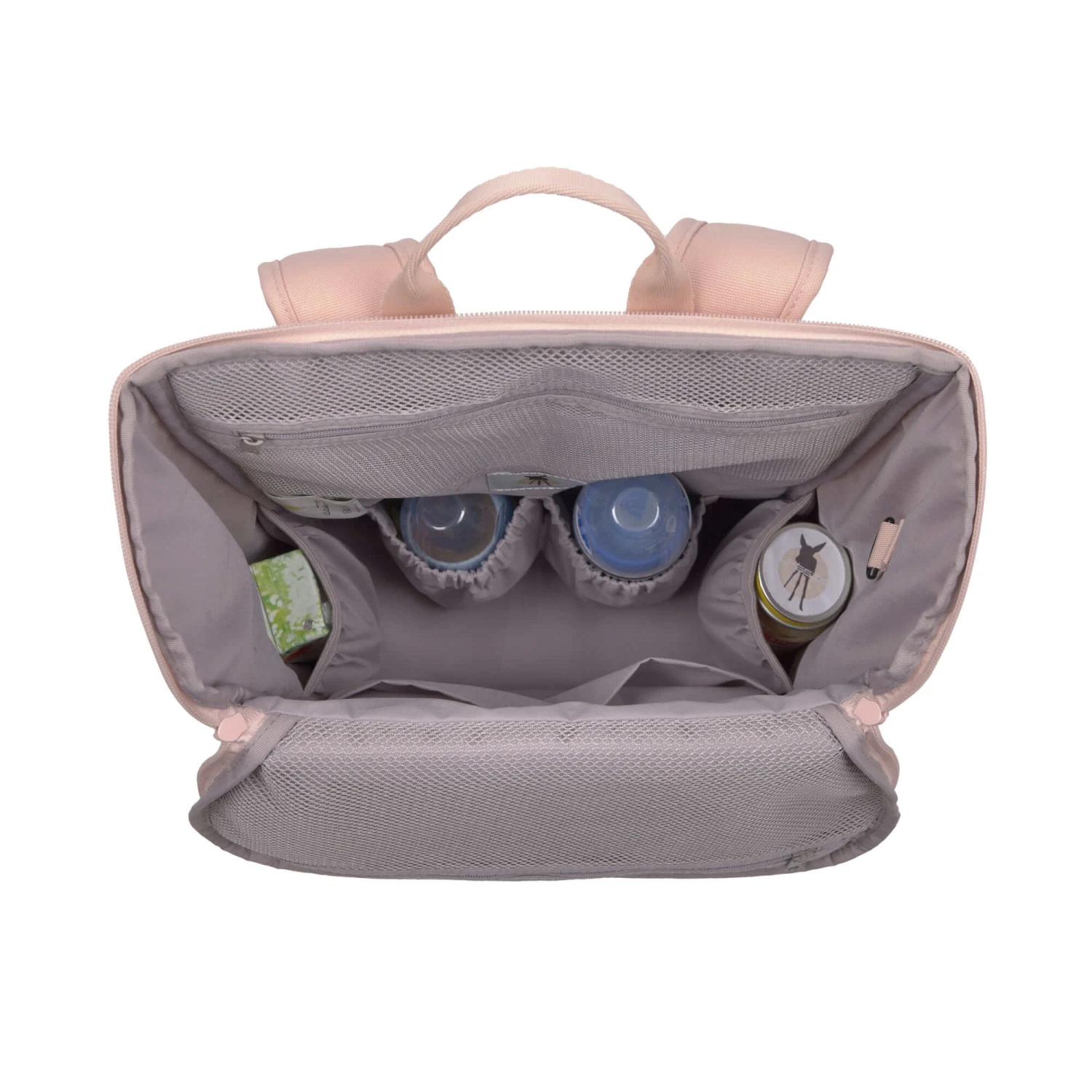 The Slender Backpack has an ingenious top opener that allows parents to immediately see and pick out what they are looking for inside. Once opened, the lid folds away to the front, giving quick and easy access to all the diaper accessories you need when you are out and about. Near the top are two practical mesh pockets for smaller items that might otherwise get buried.