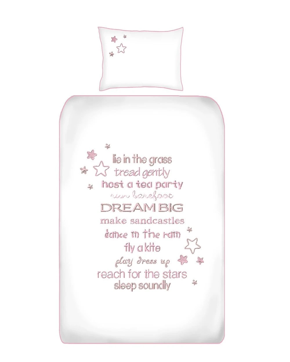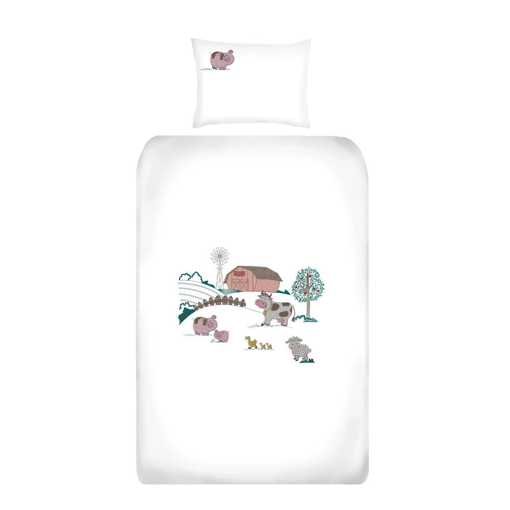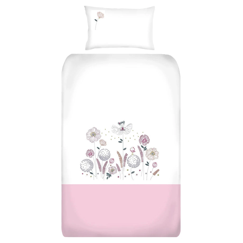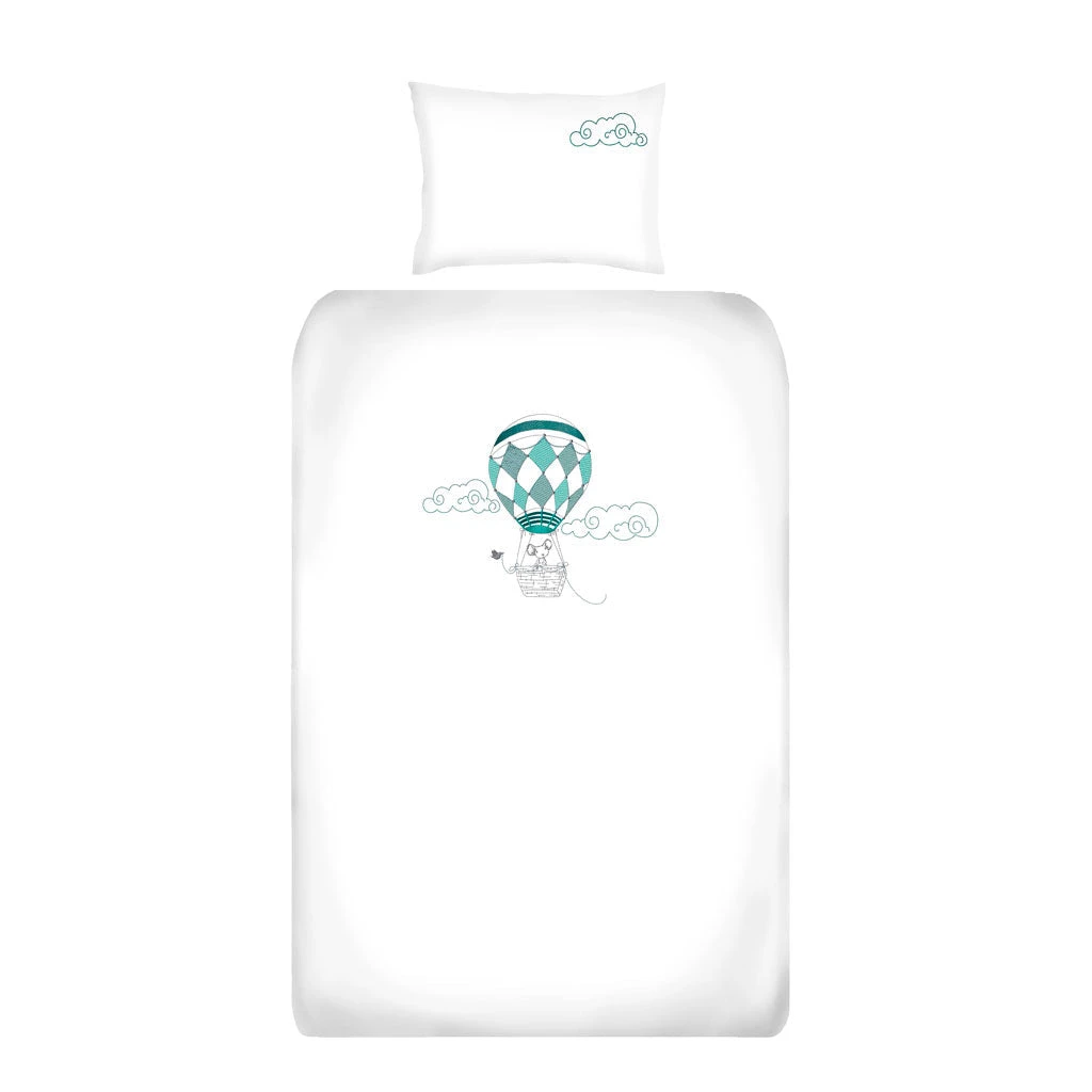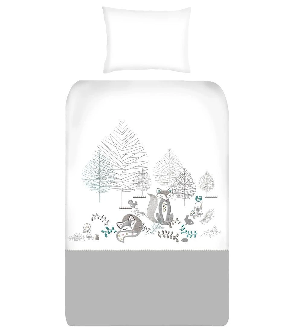 The cot duvet cover set design is created using a mix of soft satin and running stitch embroidery. A piped finish compliments the design and makes a product that will not only enhance the look of your nursery, but will ensure that your baby has the best sleeping environment possible.
