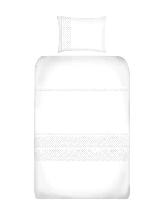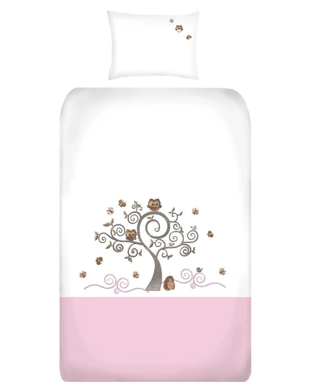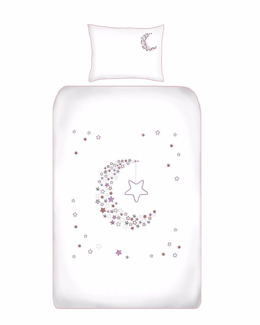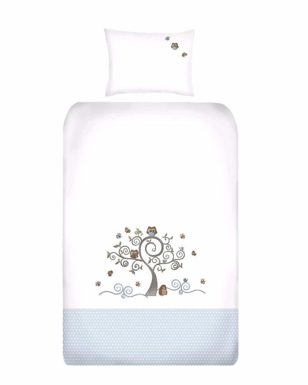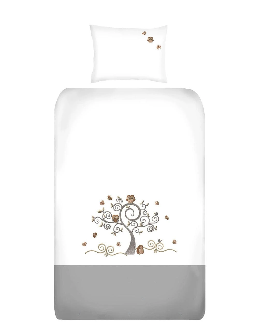 The cot duvet cover set design is created using a mix of soft satin and running stitch embroidery. A piped finish compliments the design and makes a product that will not only enhance the look of your nursery, but will ensure that your baby has the best sleeping environment possible.
