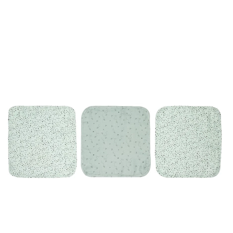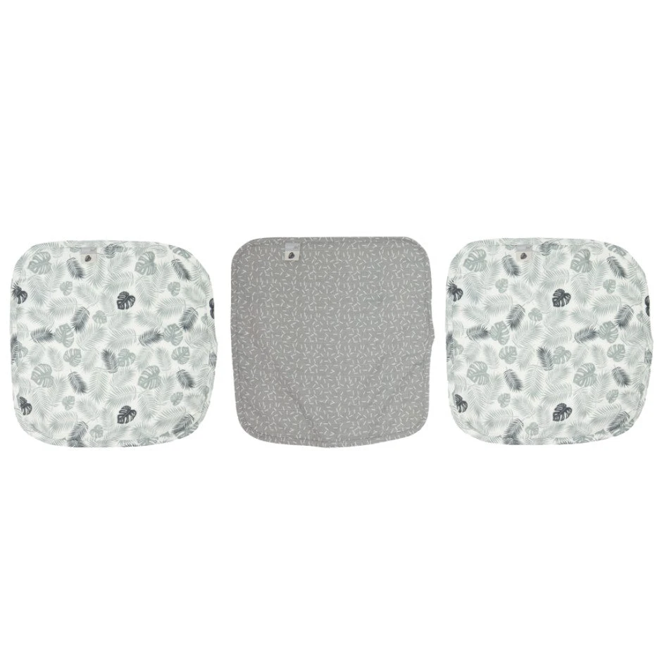 A set of three bébé-jou Fabulous gauze handkerchiefs with cheerful print motifs. The fabric is made of 70% bamboo and 30% cotton. This makes the fabric particularly soft and absorbent. The fabric is very comfortable for sensitive baby skin and ideal for baby meals.