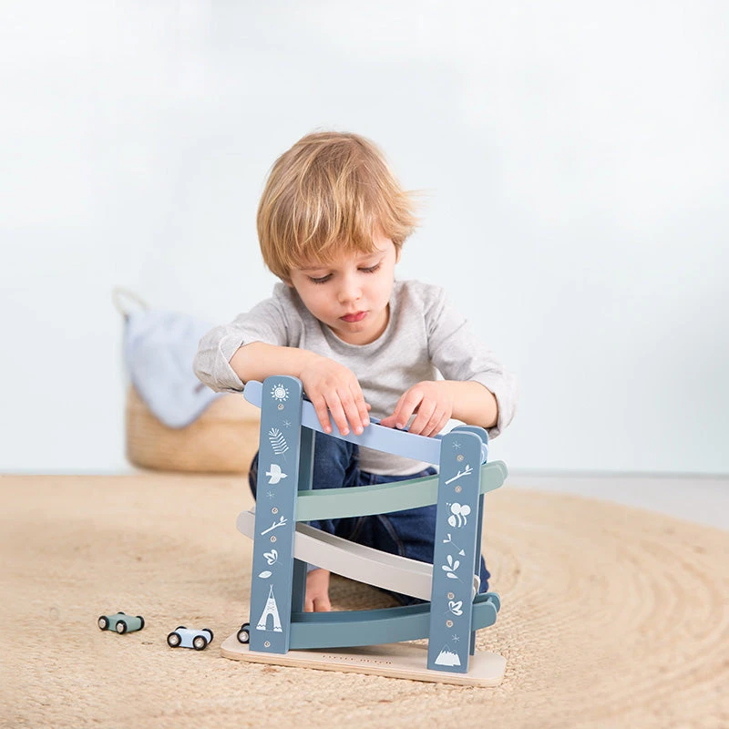 Hours of fun with this wooden Car Lane from Little Dutch! Put the cars one by one at the top of the motorway and let them race down! Which car is the fastest?Â