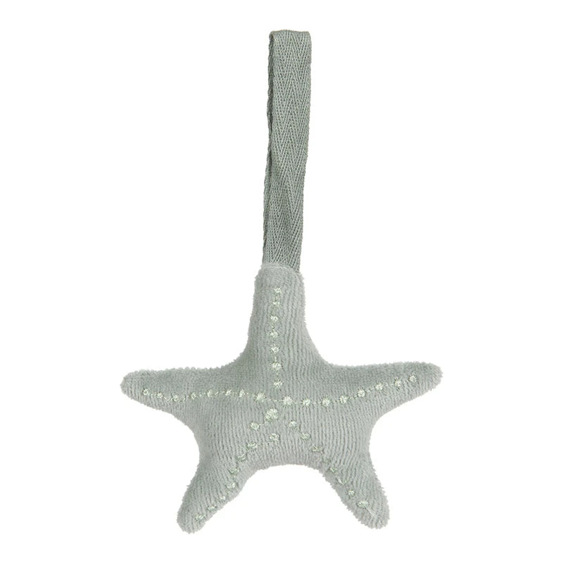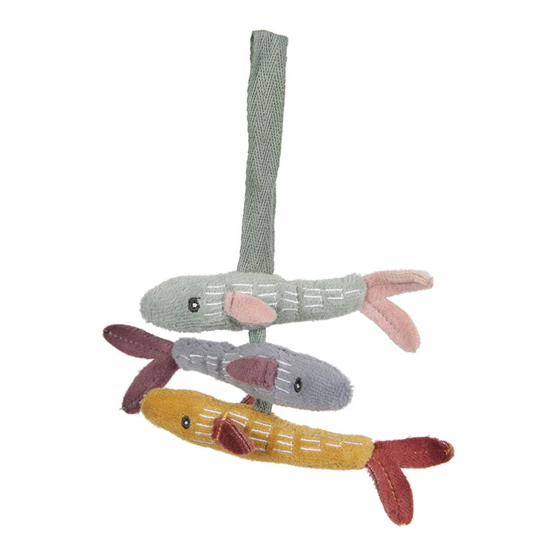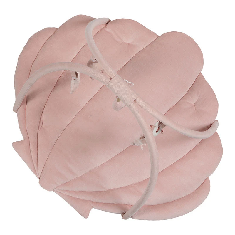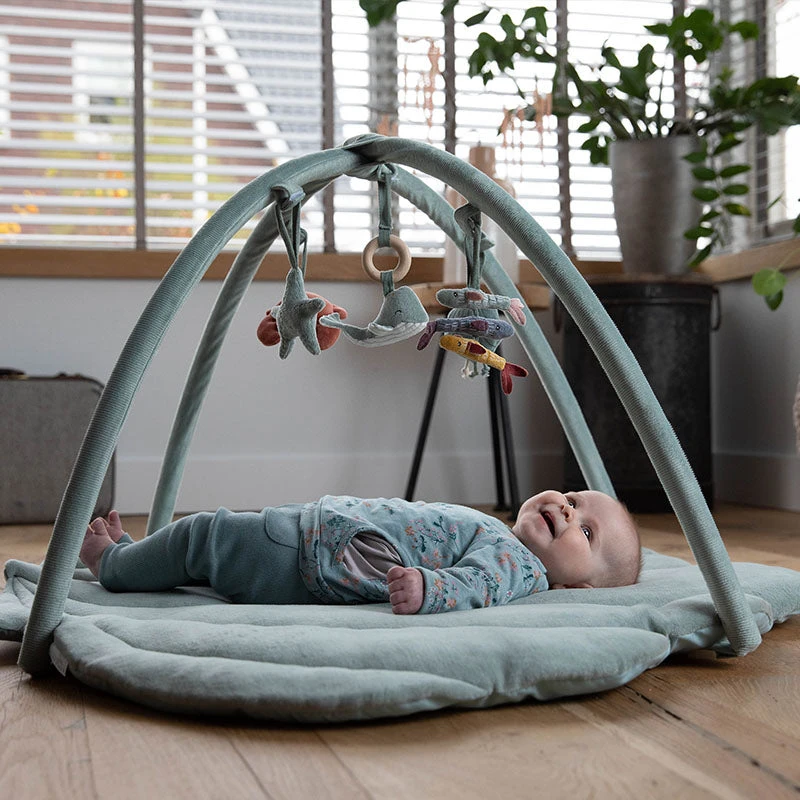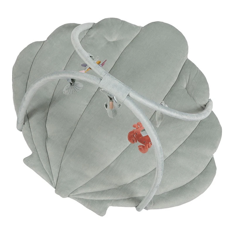 This soft, padded Little Dutch play mat in the shape of a shell is a great play area for babies. On the arches hang colorful toys of cheerful underwater animals, which stimulate babies to touch and discover them. The toys are removable, so the baby can also play with them in the pram. Â