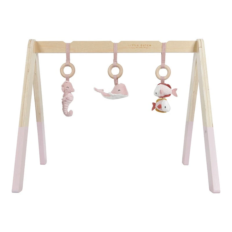The complete Little Dutch baby gym is made of sturdy wood and comes with three toys. These colorful toys of happy aquatic animals have different textures and stimulate babies to touch and discover them. The baby gym promotes hand-eye coordination and stimulates the senses.
