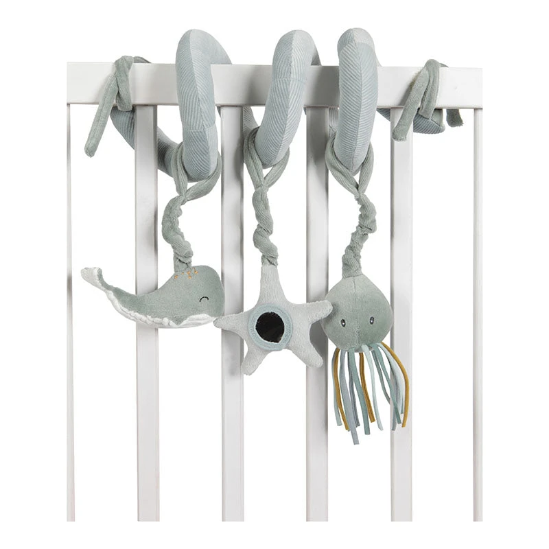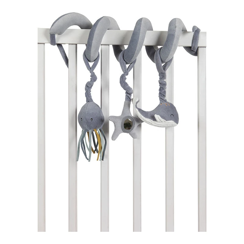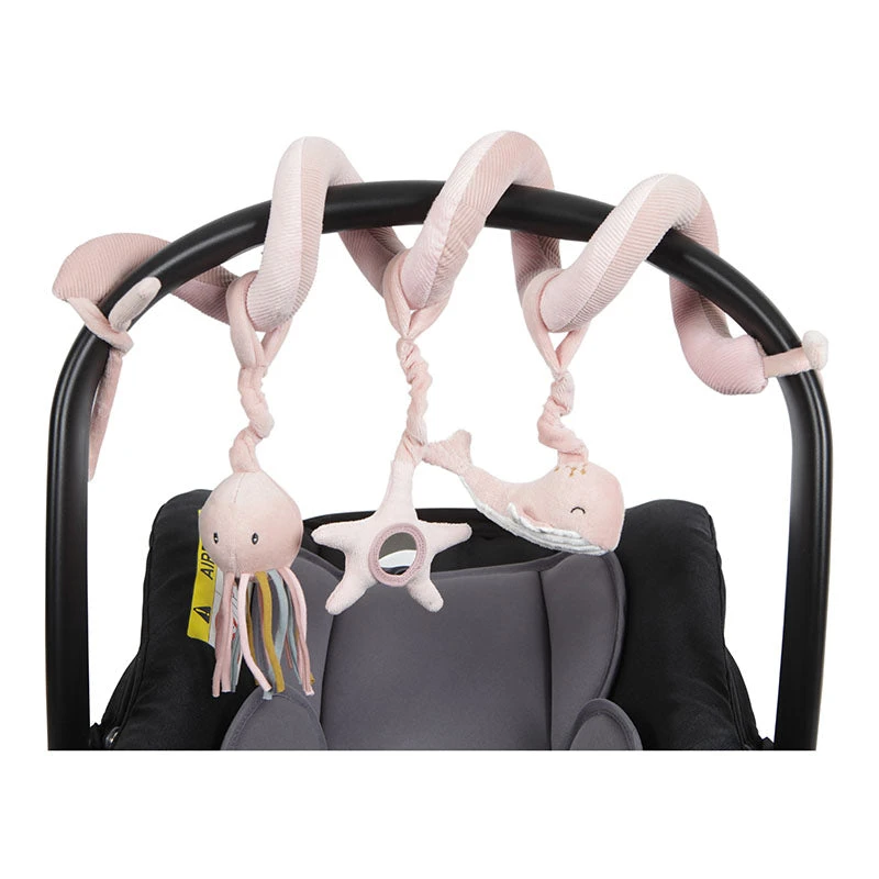 The spiral can be easily attached to the box or to the stroller bracket. This toy not only provides a lot of fun and entertainment, but also stimulates hand-eye coordination.