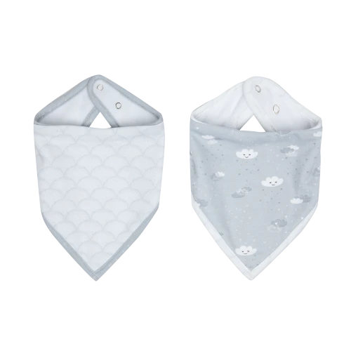 The LUMA babycare Bandana Bibs are performed in five trendy prints. Your baby stays clean and dry during a bite or while drooling with tooth eruption. In addition, the Bandana Bib is a cool accessory for your little one’s outfit. The LUMA babycare Bandana Bibs can be worn in two positions and closed with tight pushbuttons.