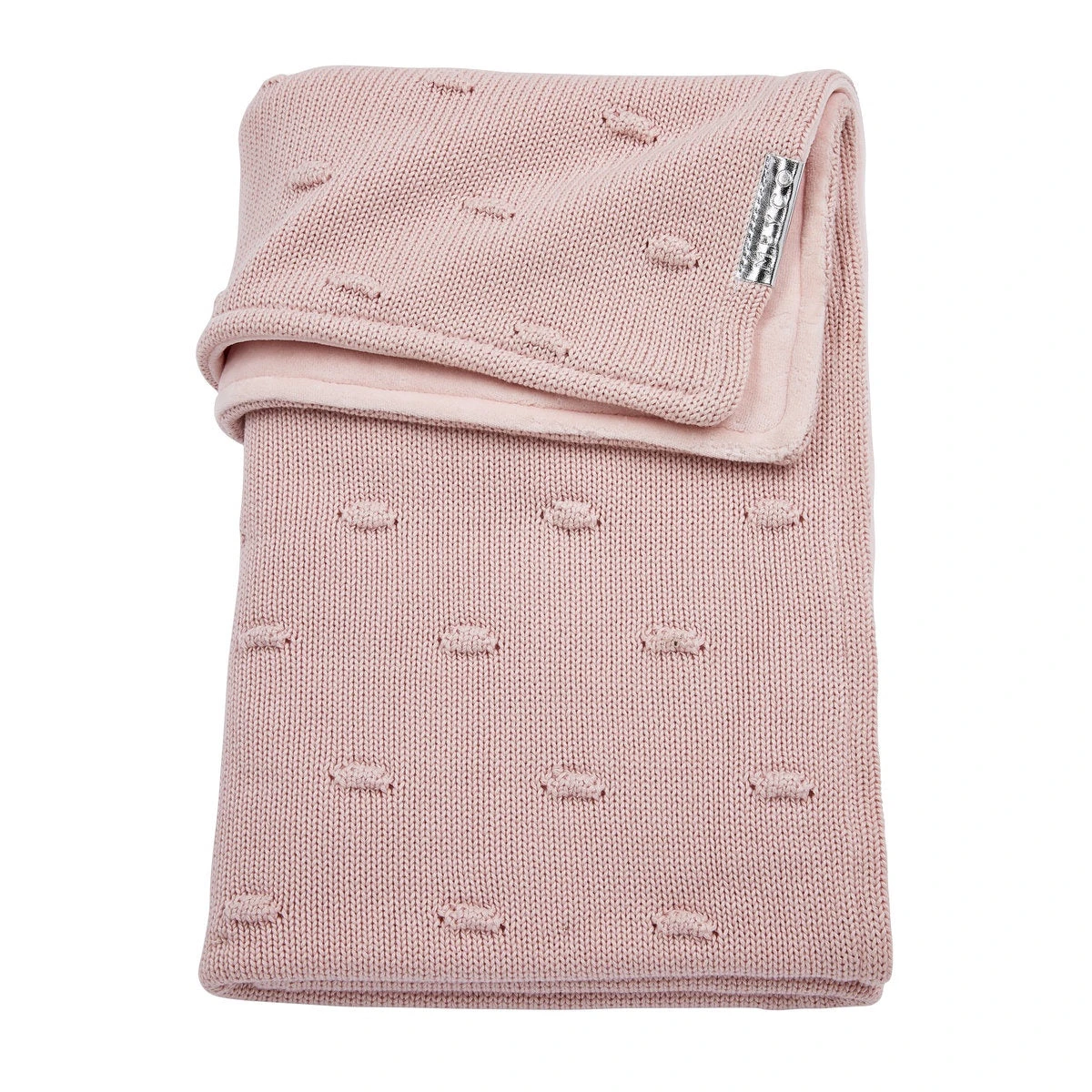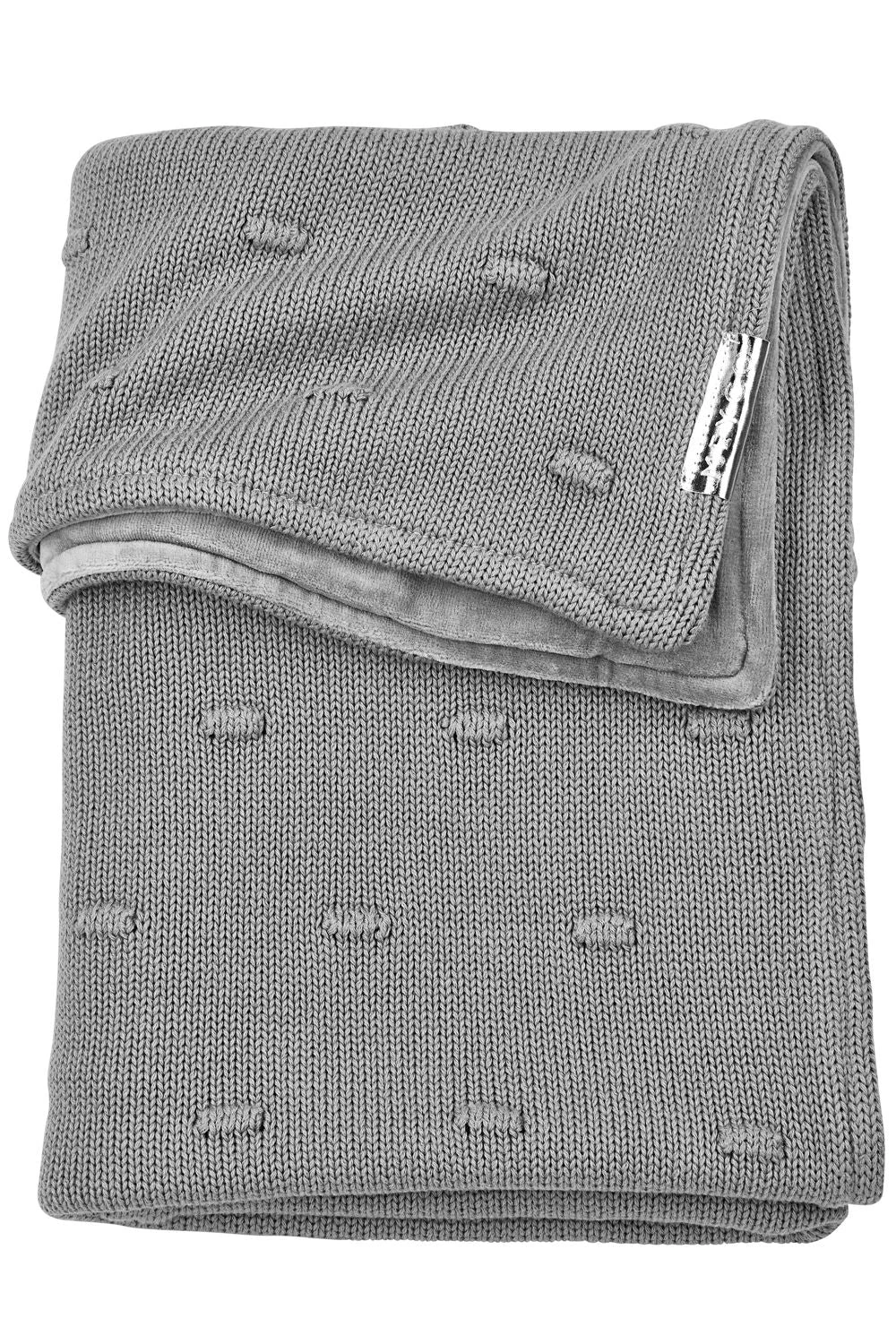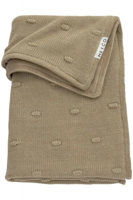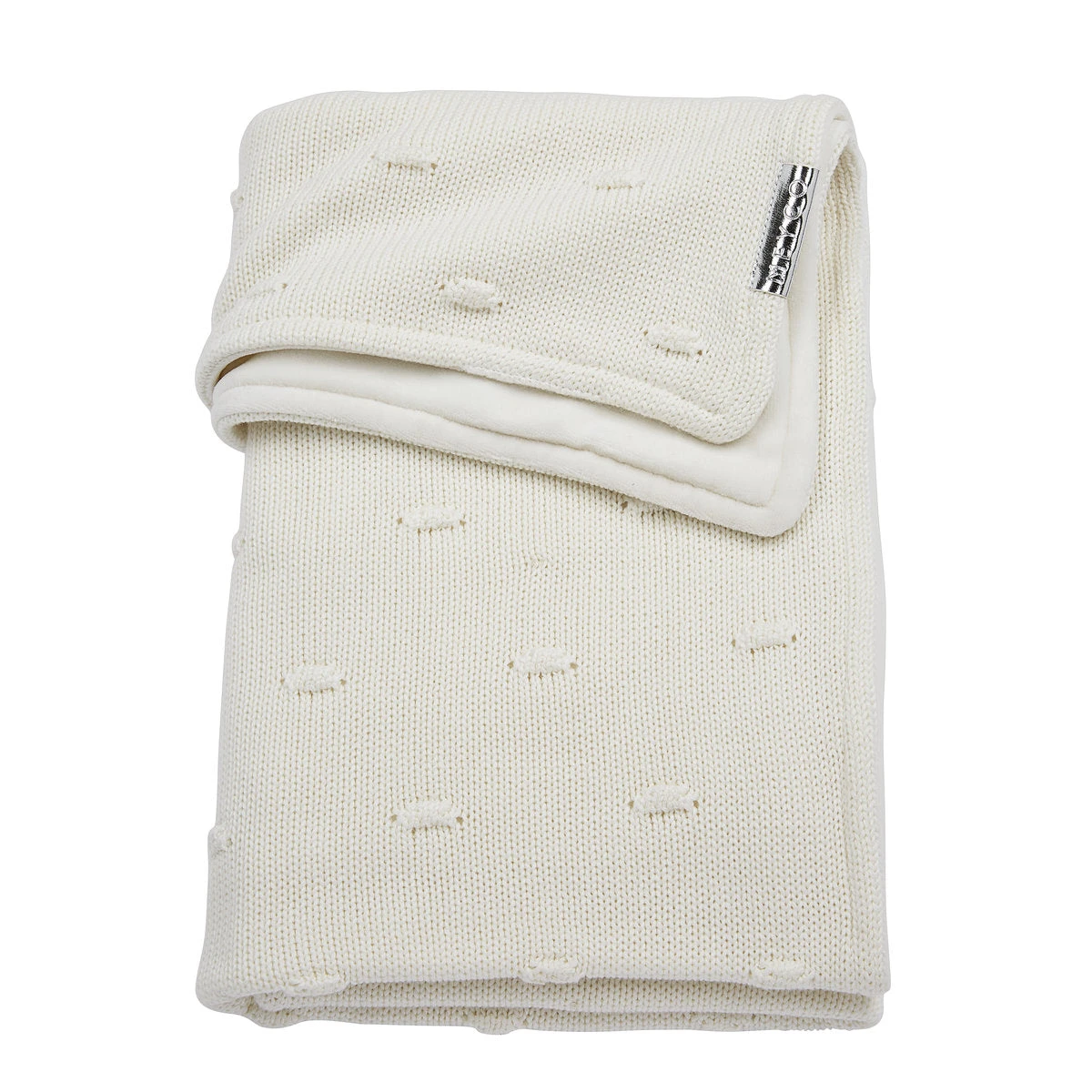 The Meyco knots baby blanket with velvet is a knitted baby blanket and wonderfully soft and comfortable. The blanket consists of two layers. The knitted front of 100% cotton has subtle 3D studs and gives a contemporary, but also luxurious look. The back is made of 80% cotton and 20% polyester velvet. Thanks to the double layer, the blanket keeps your child well at temperature in the spring / autumn and winter.