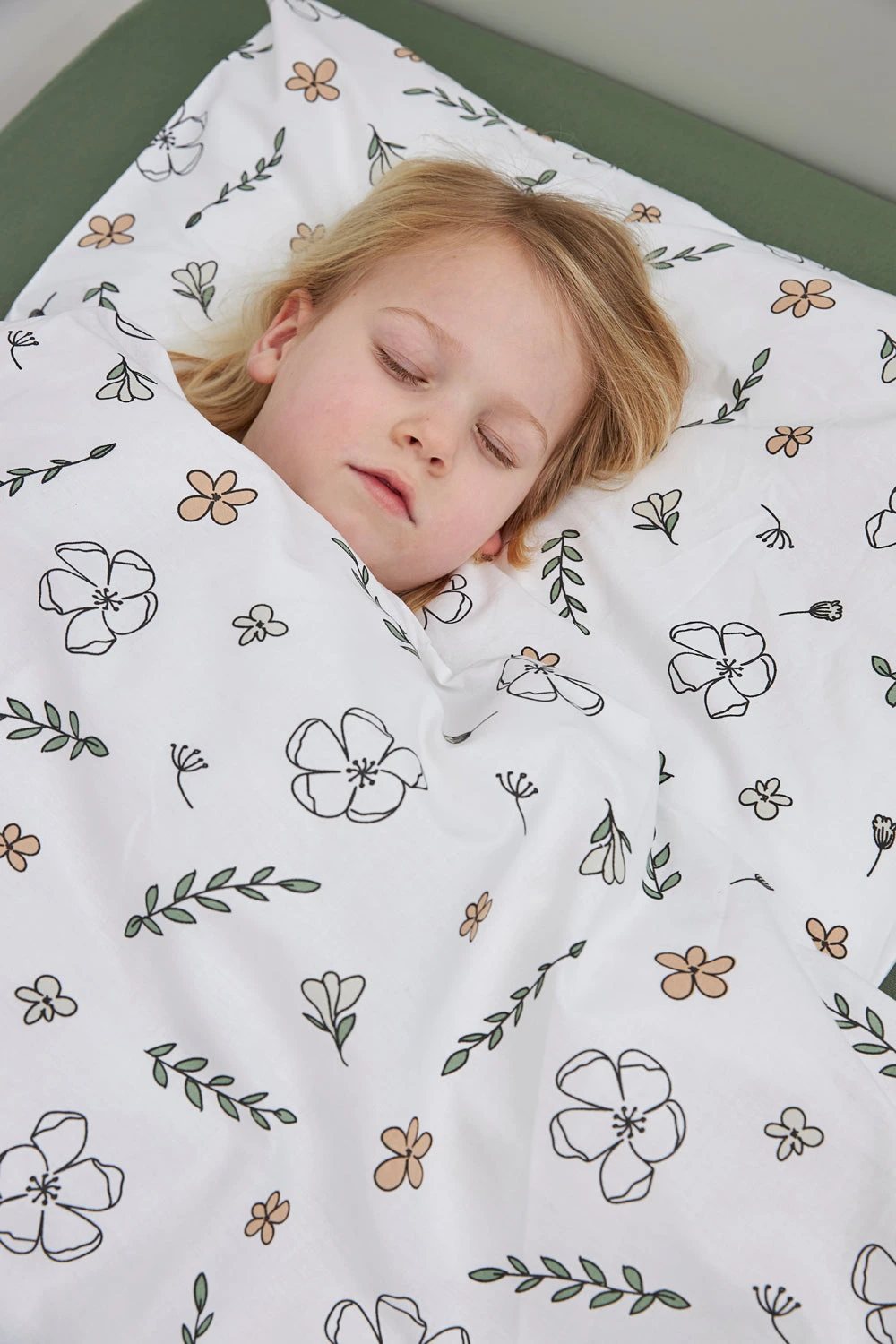The Meyco duvet cover is suitable for a cot and consists of a duvet cover 100×135 cm and a pillowcase 40×60 cm. By using 100% organic cotton, the set is breathable and comfortable to sleep under.