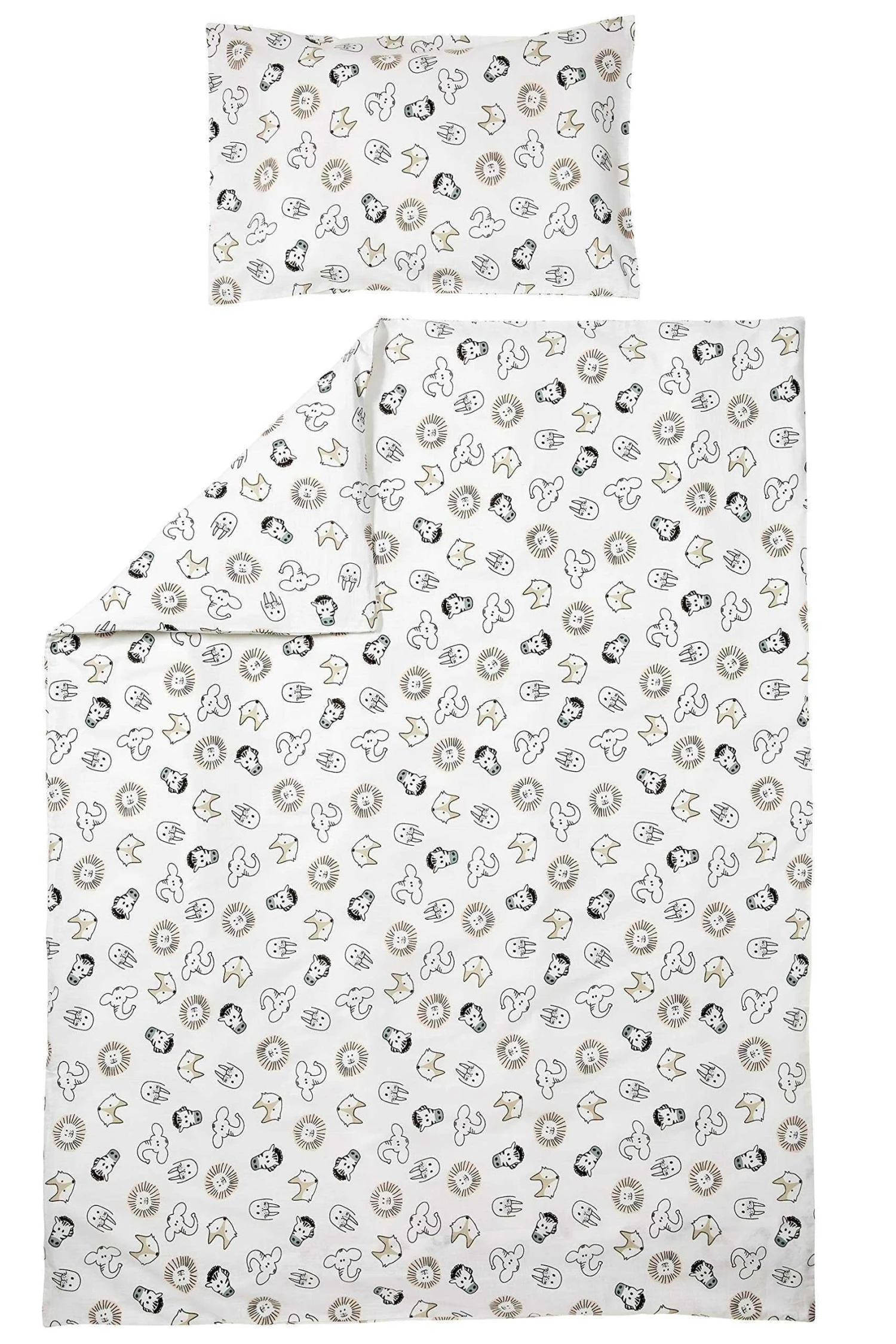 The Meyco duvet cover is suitable for a cot and consists of a duvet cover 100×135 cm and a pillowcase 40×60 cm. Due to the use of 100% cotton, the set is breathable and comfortable to sleep under.