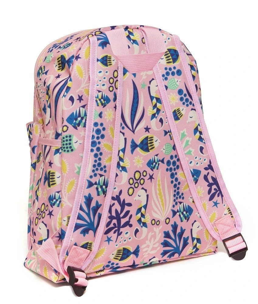 This fresh under the sea backpack with seahorses, fishes and under water plants on a lovely soft pink ground is made of a firm 420D oxford fabric + PVC coating + matching lining.