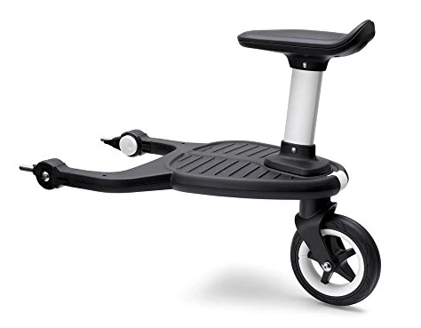 Create a comfortable ride for you and your child by attaching the new bugaboo comfort wheeled board, with detachable seat to the chassis of your bugaboo stroller in just two clicks. The well-known original bugaboo wheeled board has been redesigned into the bugaboo comfort wheeled board to assure extra comfort for both you and your child. The flexible board positioning – left or right from the center – creates extra walking space. Featuring bugaboo’s signature suspension for a bump-free stroll, the board offers your child the option to stand or sit with an easy to attach seat. When not in use, the board can easily be clicked up or detached.