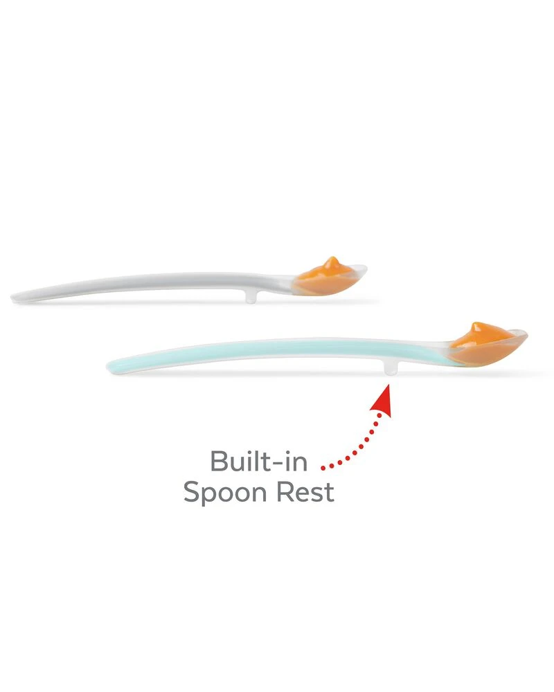 Mealtime with baby just got easier! Crafted from soft and flexible silicone, this streamlined spoon set is ultra-gentle on baby’s gums. Featuring a special spatula edge, it’s a cinch to wipe food off baby’s face. A built-in spoon rest adds to the no-fuss, no-muss design. Explore our entire Infant Feeding Collection: Time-saving tools for smart prep and feeding—at home & on the go!