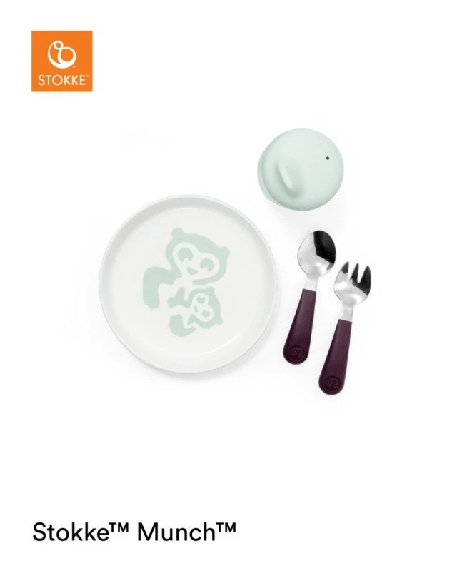Stokke® Munch Essentials comes with easy-grip utensils, anti-drip sippy cup, ergonomic spoon & fork and plate with non-slip base. Made of high quality, food grade silicone, they are strong and durable. Our dinnerware and cutlery are made in a smaller size, just for children. They are ergonomic, making them easy for little hands to hold. Best of all, each piece has been designed to encourage self-feeding, making it great for use from baby to toddler.