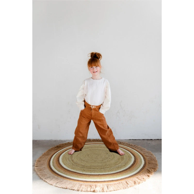 With the Tapis Petit Round Tess Rug 110 x 110 cm you can brighten up your child’s room quickly and easily! The rug has warm natural colors that create an attractive appearance. Furthermore, the rug is made of high-quality material and feels comfortable and soft.