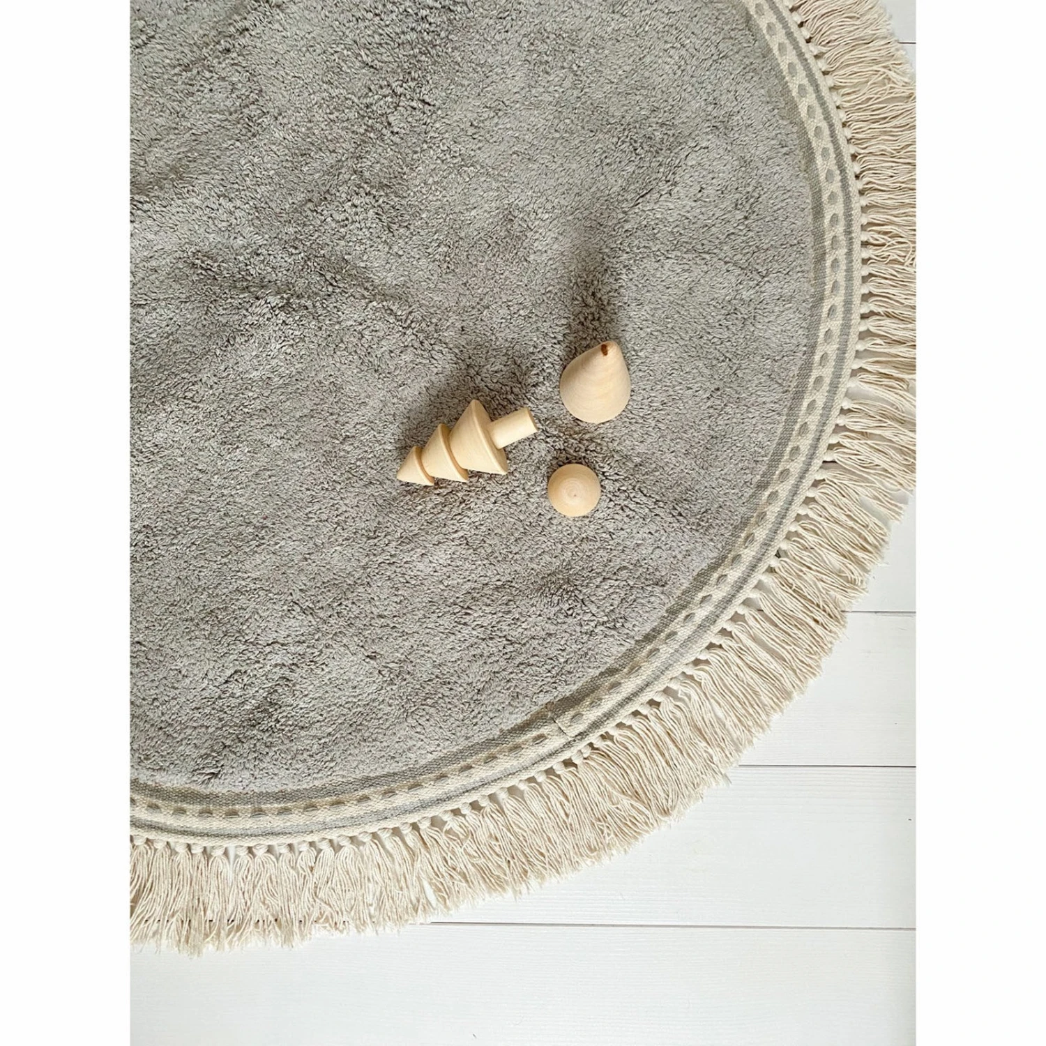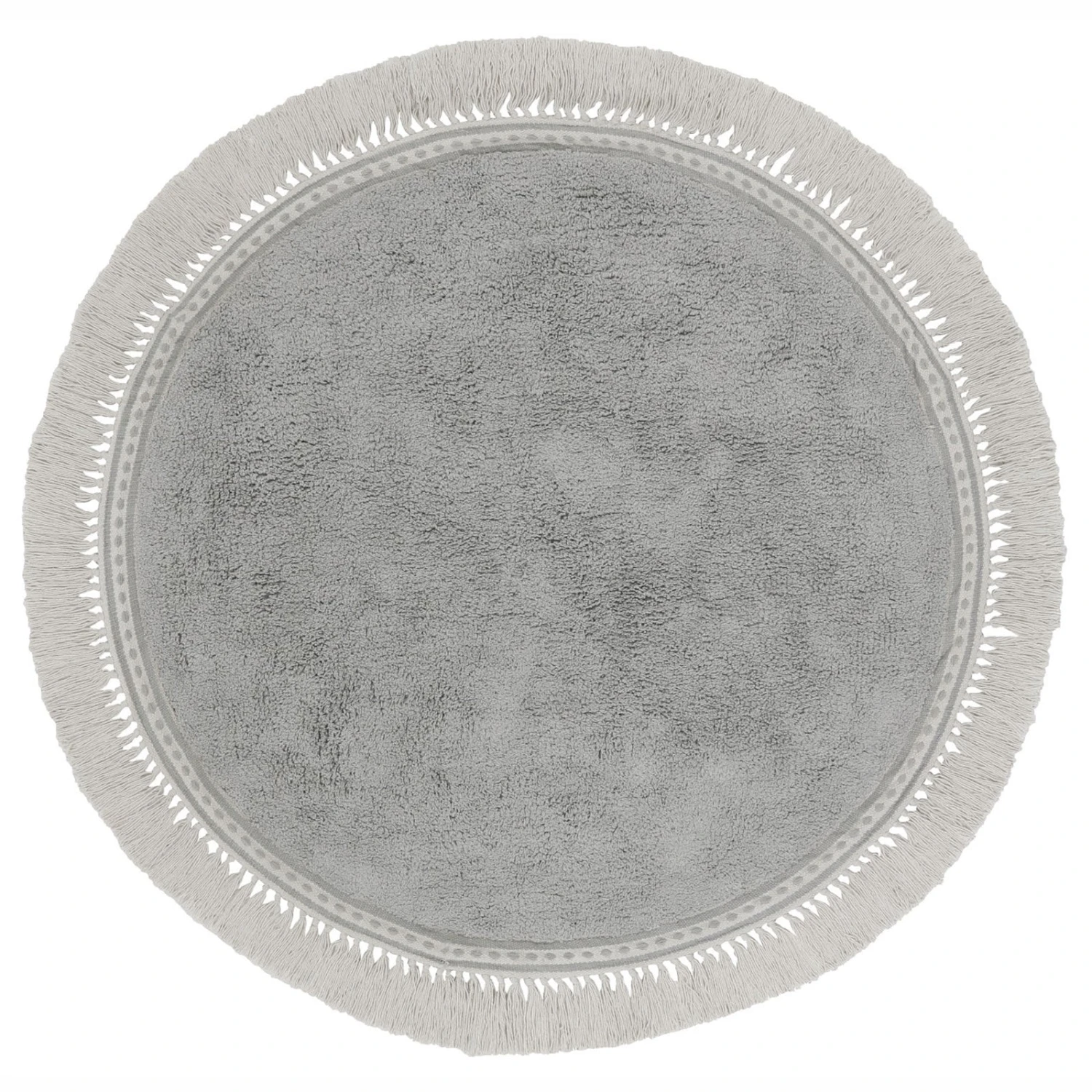 Gray Lily rug by Tapis Petit. The rug has fringes all-around.
